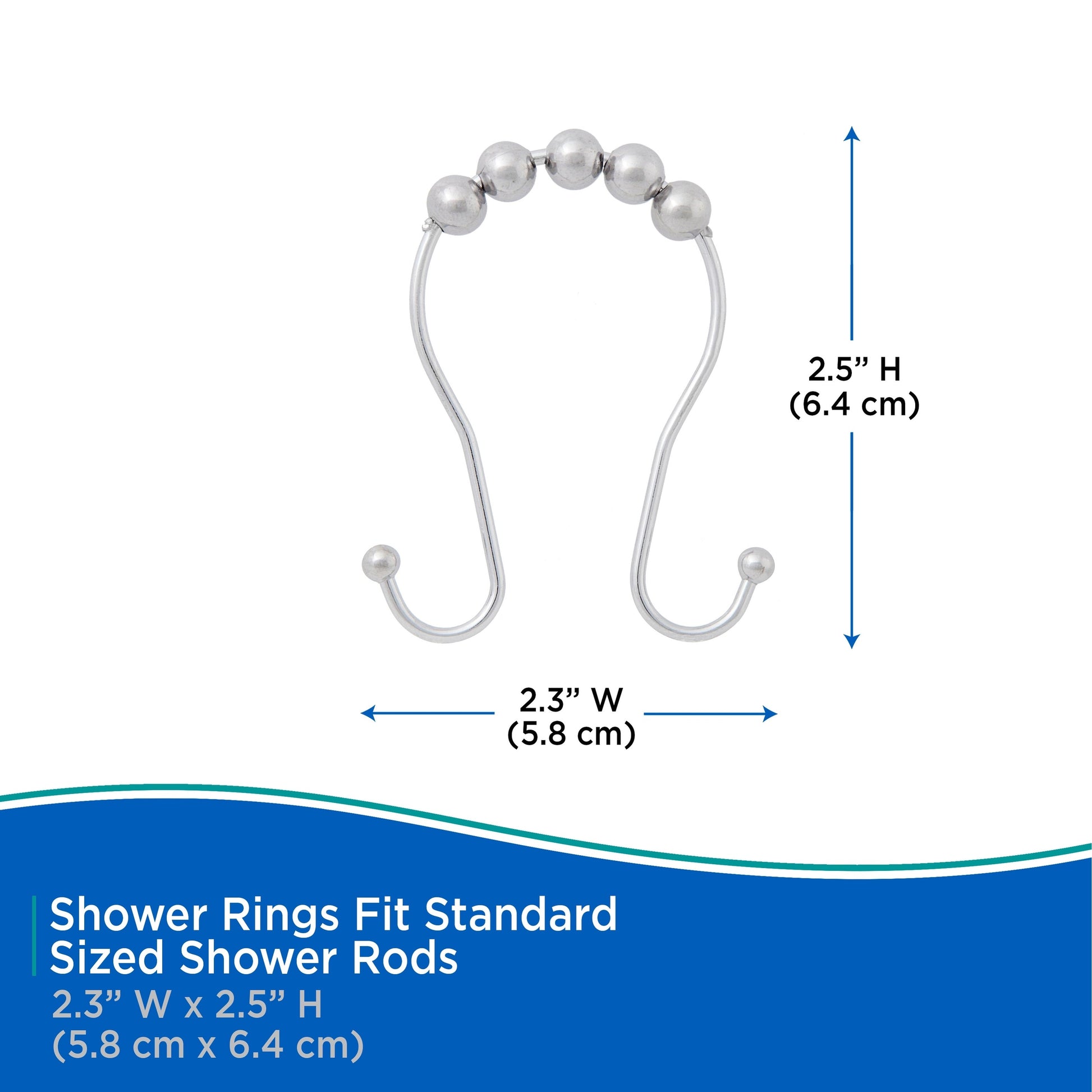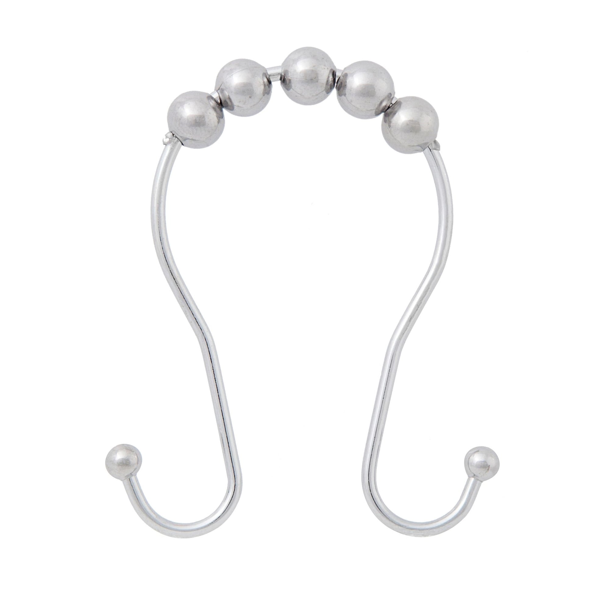 This set of twelve Kenney Beaded Roller Shower Curtain Double Hooks are designed to coordinate with many bathroom hardware finishes. With an additional hook on the back, use these to hang both a shower liner and a shower curtain separately, making it easy to remove or replace either. The beads help the hooks to glide effortlessly over your shower rod. Each package includes 12 double hooks, fitting all standard shower liners and rods.