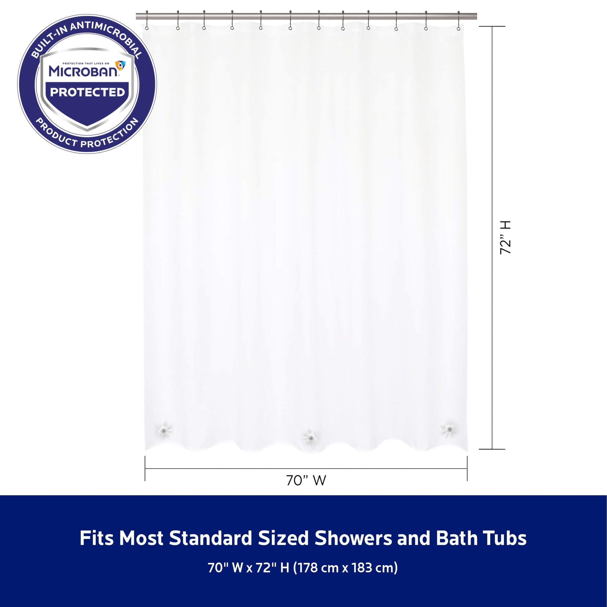 Standard sized, this liner measures 70 inches wide by 72 inches tall (178 cm x 183 cm) to fit most showers and bath tubs.