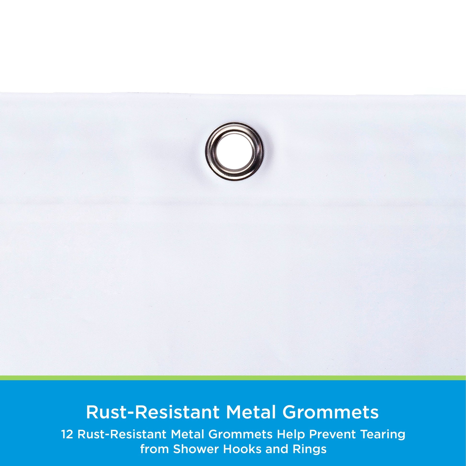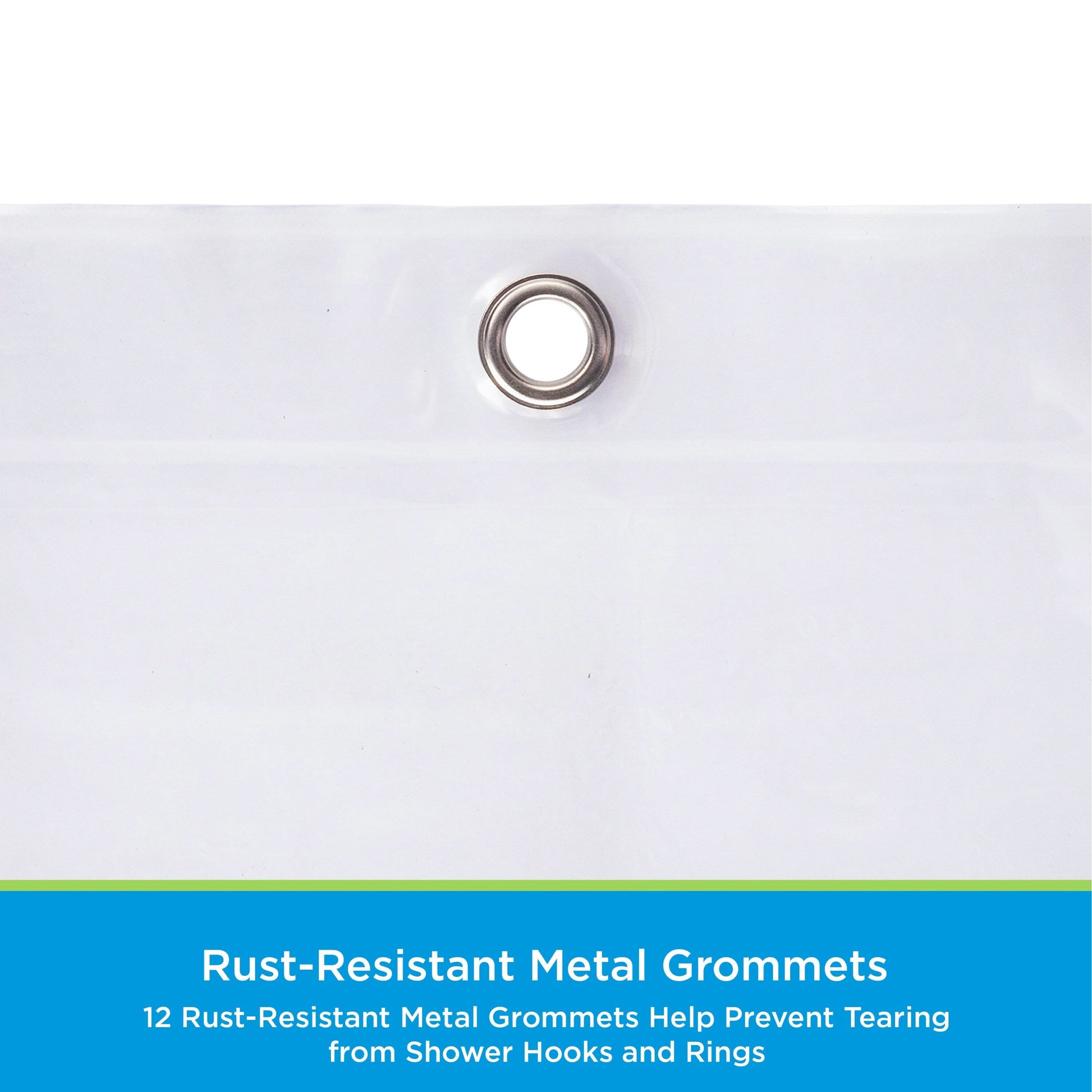 The Kenney microCLEAN Antimicrobial Protection Medium Weight PEVA Shower Curtain Liner inhibits the growth of stain and odor-causing mold and mildew and provides enhanced product protection. The Kenney microCLEAN PEVA Shower Curtain Liner has been specially treated with antimicrobial additives to reduce bacteria, fungi and algae growth on the product. The Shower Liner is made of environmentally friendly PEVA, making it PVC-free and odorless. The liner has 12 rust-resistant metal grommet hang holes to prevent tearing from shower hooks and rings. The weighted hem on the waterproof liner keeps the liner in place, so water stays in your bathtub and off of the floor.