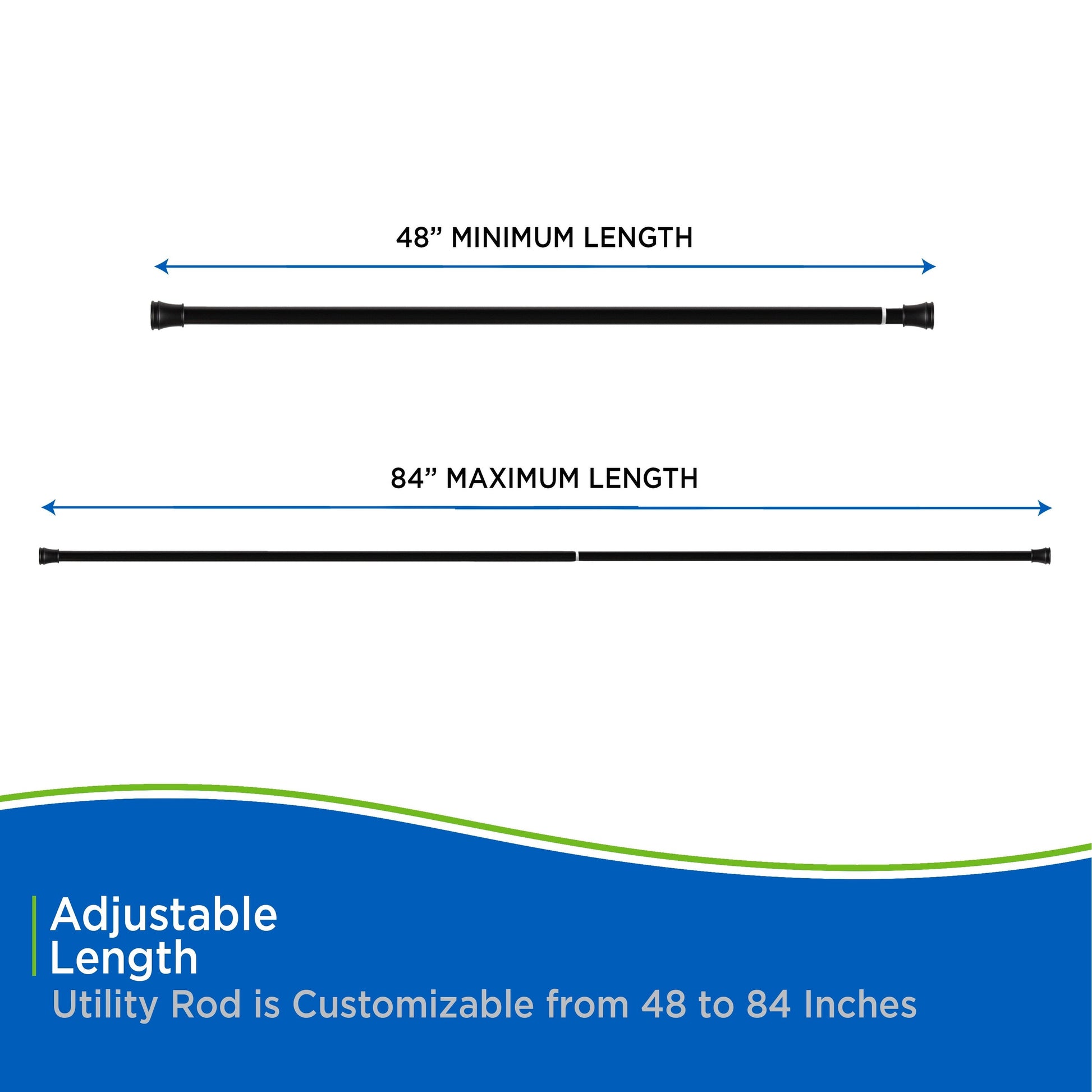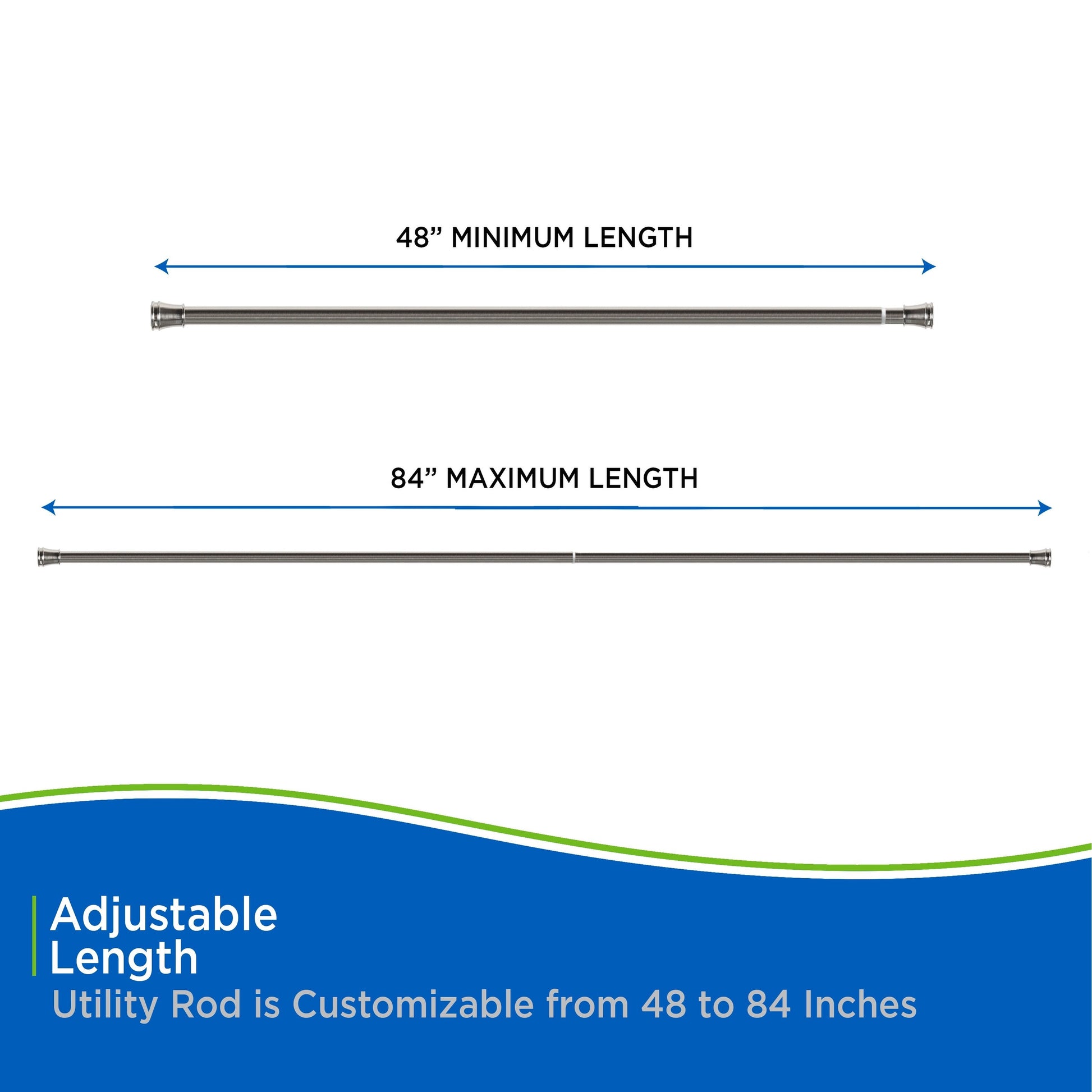The Kenney Twist & Fit 1' Tension Utility Rod finish is adjustable from 48-84 inches wide