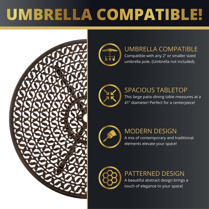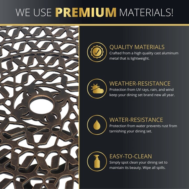 Kinger Home Harmon 5-Piece Cast Aluminum Outdoor Dining with Cushions - 41-Inch