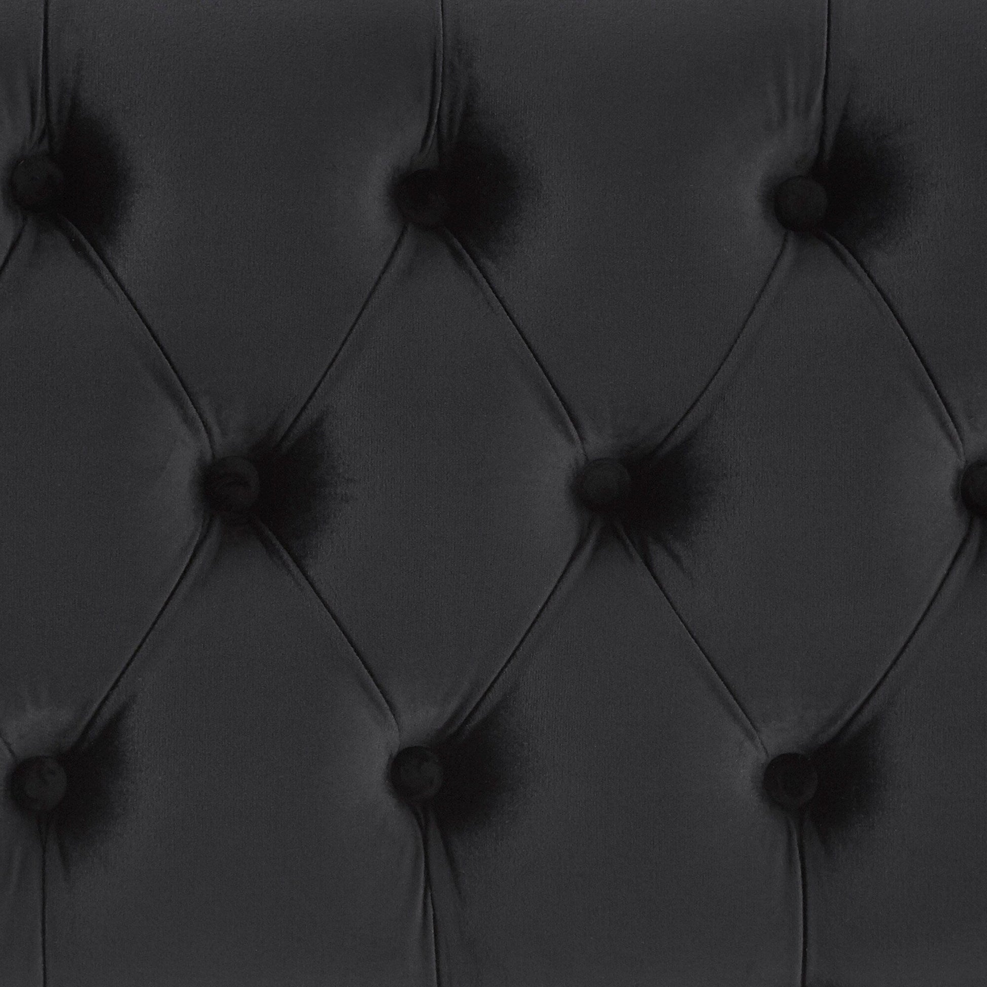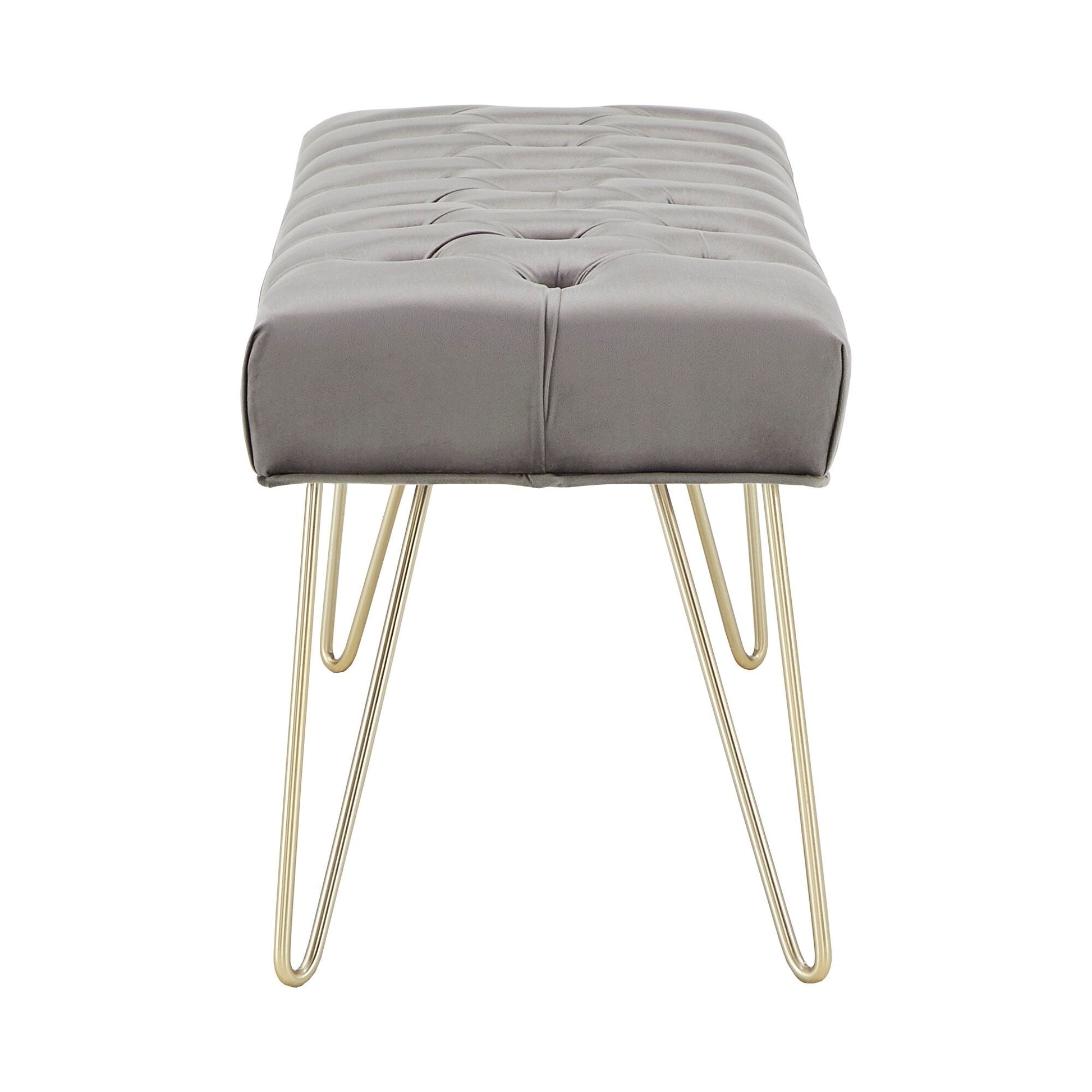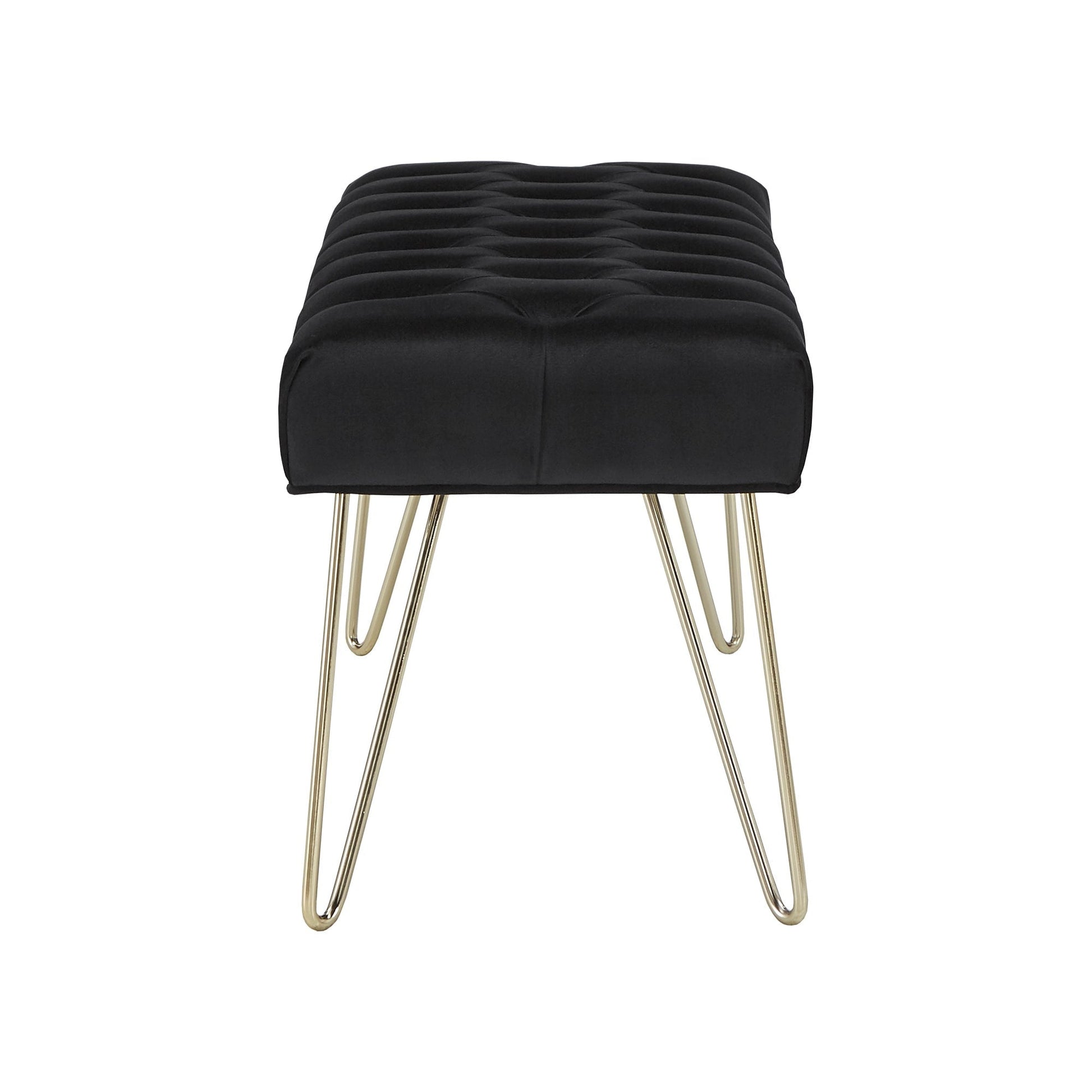 Soft, velvet upholstery with gold-finished metal hairpin legs for glam look