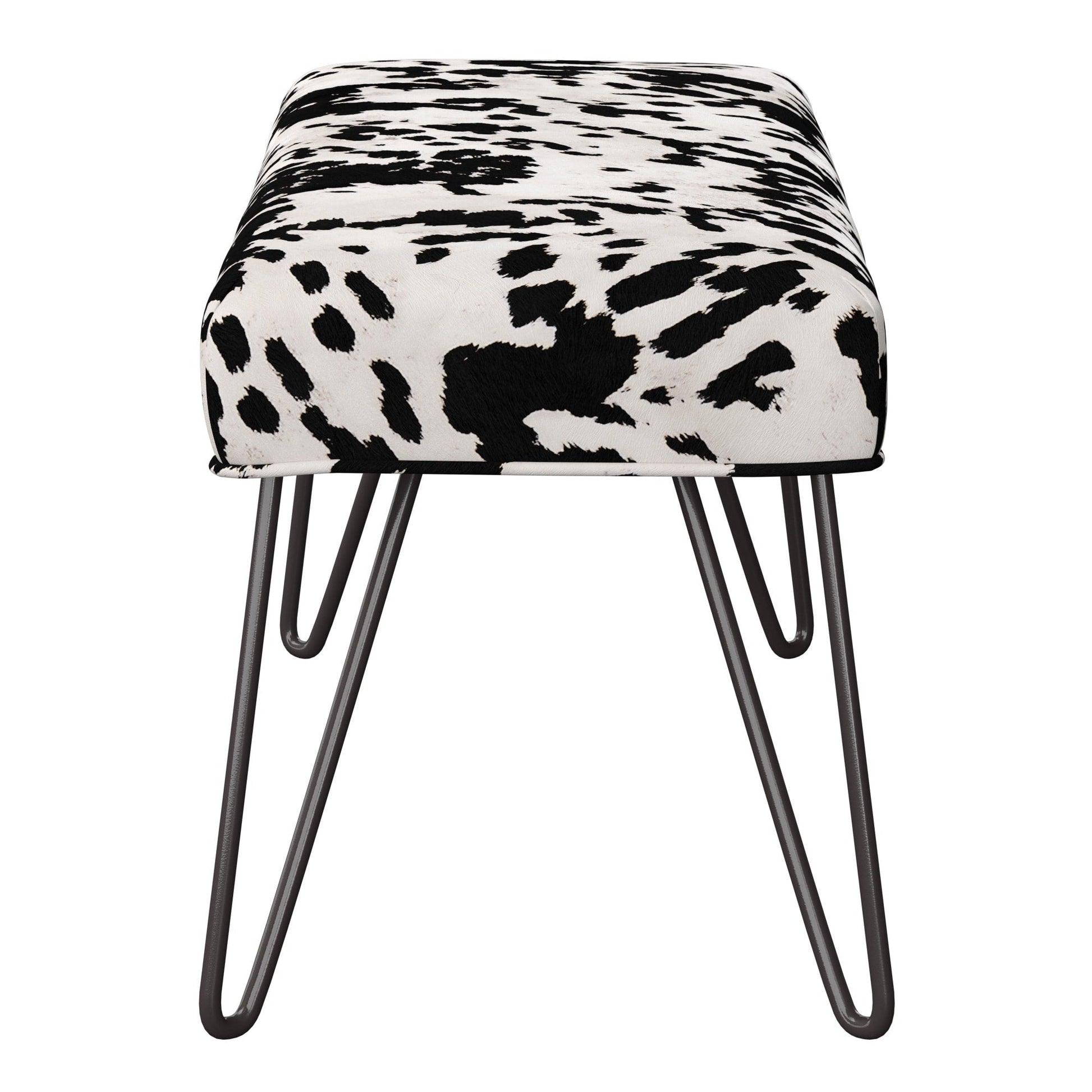Cowhide print for southwestern look with black-finished metal hairpin legs