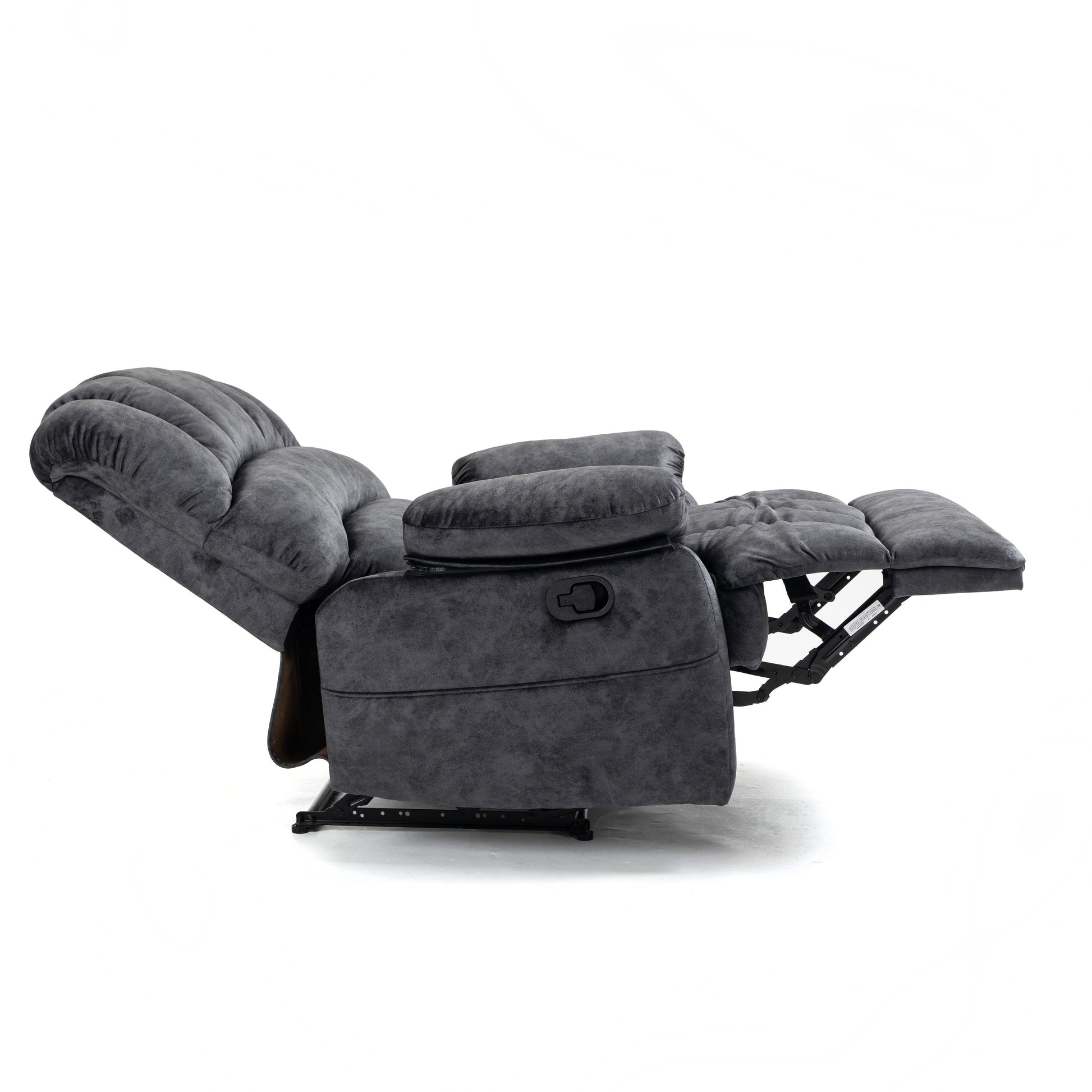 Experience unparalleled comfort and style with this oversized manual recliner chair. Designed to accommodate larger individuals, it offers a spacious and cozy seating solution for your living room. The easy-to-use side button allows you to adjust the recline angle up to 155 degrees, providing the perfect position for relaxation, reading, or napping. The extra-large design ensures that everyone, regardless of size, can enjoy a comfortable and supportive seat. Assembly is a breeze, requiring no tools and only about 15 minutes, making it a hassle-free addition to your home. Whether you're looking to unwind after a long day or create a cozy corner for guests, this recliner combines functionality and elegance, enhancing any living space. It's the ideal choice for those who value both comfort and aesthetics, and it seamlessly integrates into modern and traditional decor alike.