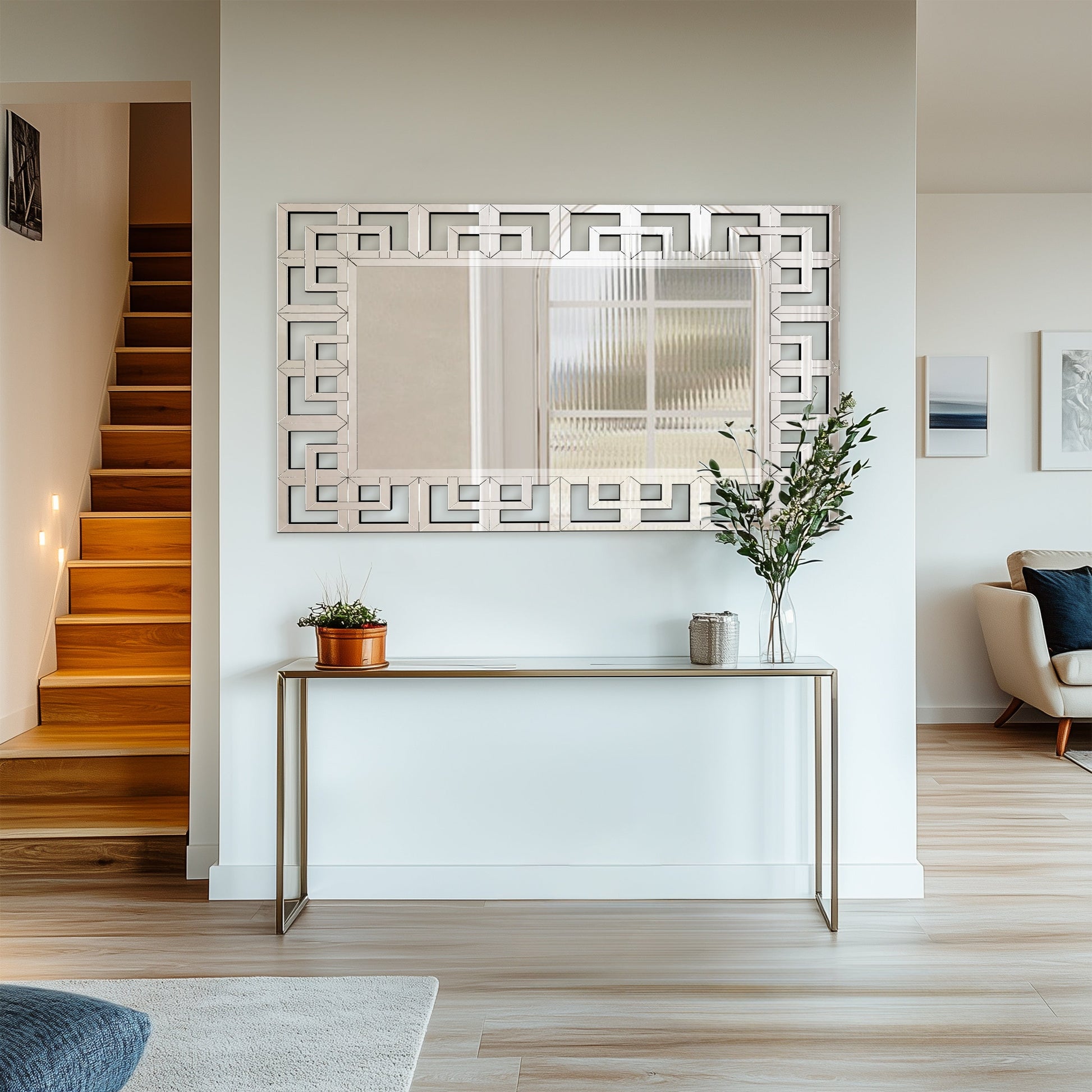 Geometric frame with silver mirror for a beautiful look, enhance the interior of your home