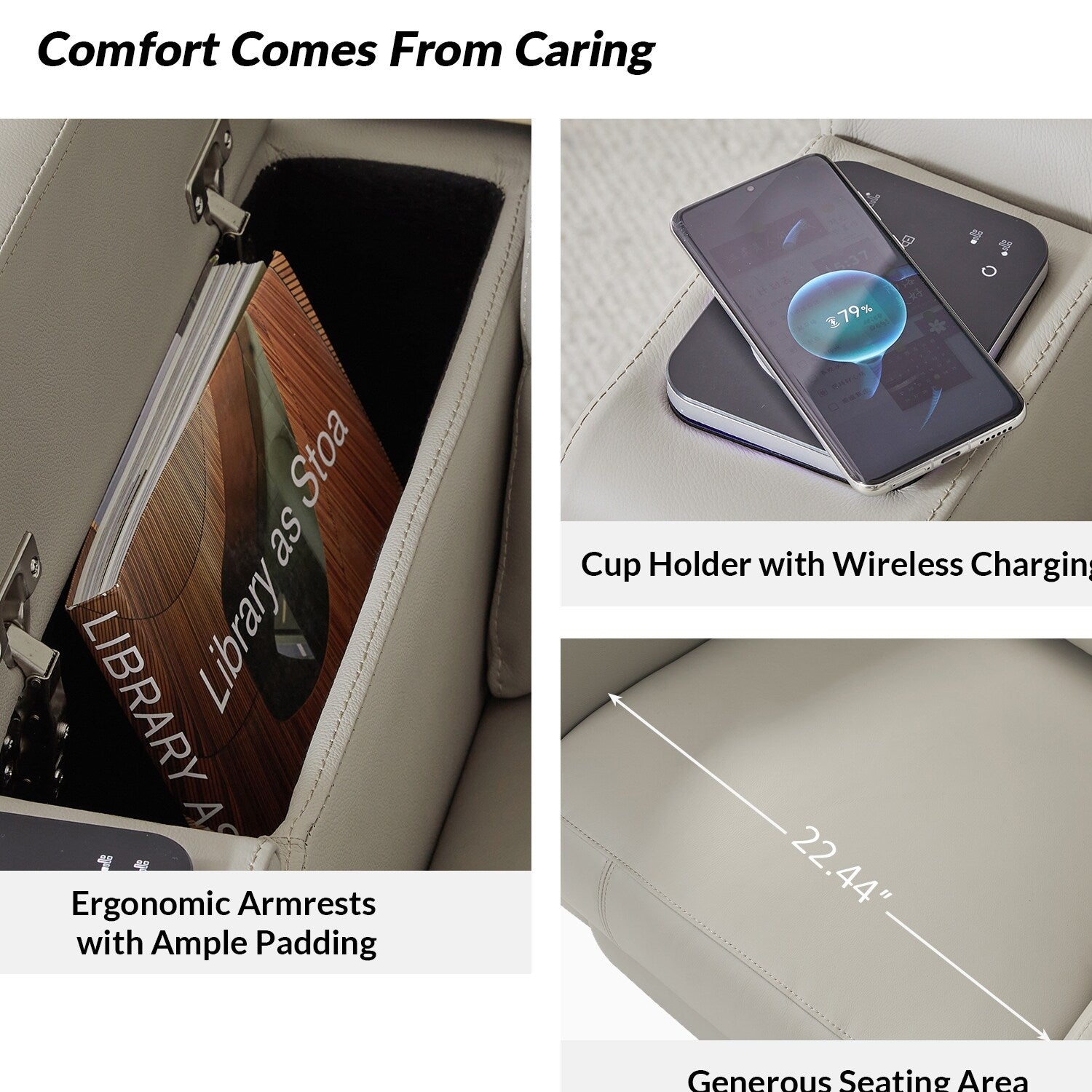 Functional Armrests: The armrests of this recliner serve multiple purposes. On the left side, you'll find a convenient cup holder for easy access to your favorite beverages, while storage space allows you to keep essentials within reach.