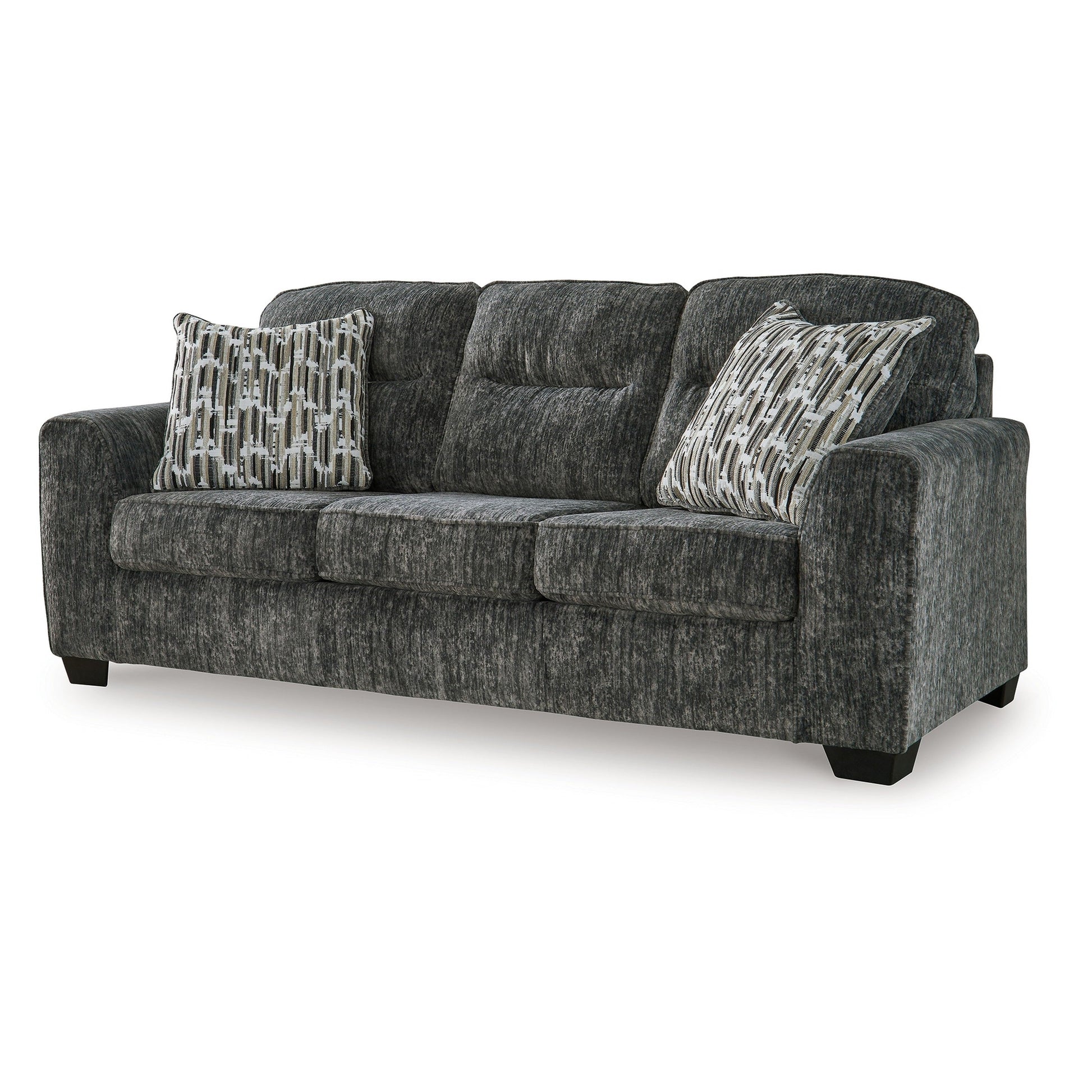 This sofa is the perfect blend of comfort and contemporary style. Its corner-blocked frame is built with durability in mind, offering a sturdy foundation for years of use. Plus, the plush polyester upholstery in a sleek dark gray color adds a modern touch to any living space. Moreover, the included accent pillows provide enhanced comfort. Check out our Layla collection for more options.