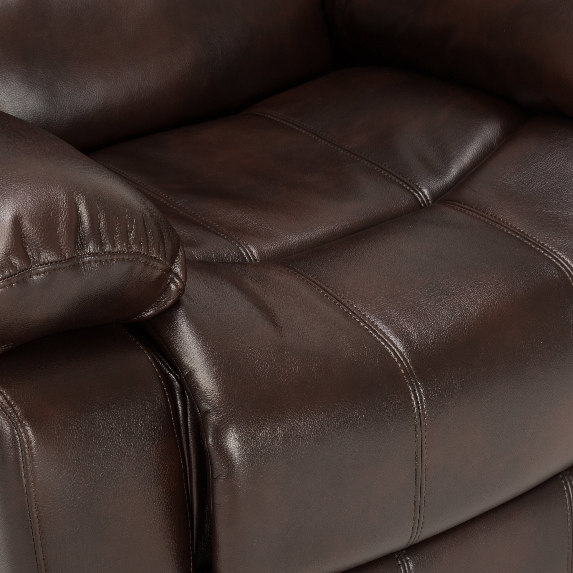 ? ? ?The Charlotte Glider Recliner is upholstered in dark brown faux leather and features a sturdy wood frame with heavy duty steel reclining mechanism is designed to support up to 330 lbs. Enjoy smooth gliding, and reclining functions in classic style.