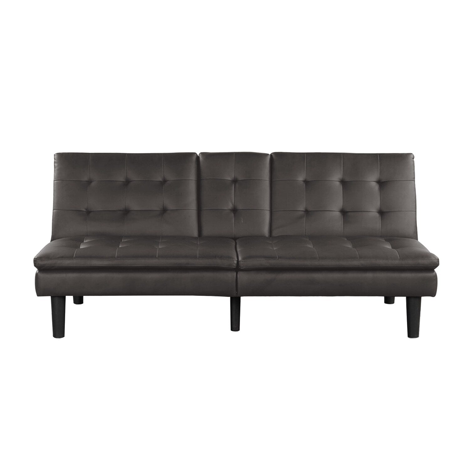 This futon sofa bed with arms elevates functionality by seamlessly blending entertainment, style, and comfort to suit any living space. Crafted with durable tufted leatherette upholstery and supported by four sturdy legs, this convertible futon offers both durability and modern flair. Plus, it's equipped with two convenient cup holders and rechargeable USB ports, ensuring you can stay connected while relaxing. Easily converting to a sleeper sofa bed, it offers versatility and convenience for any situation.