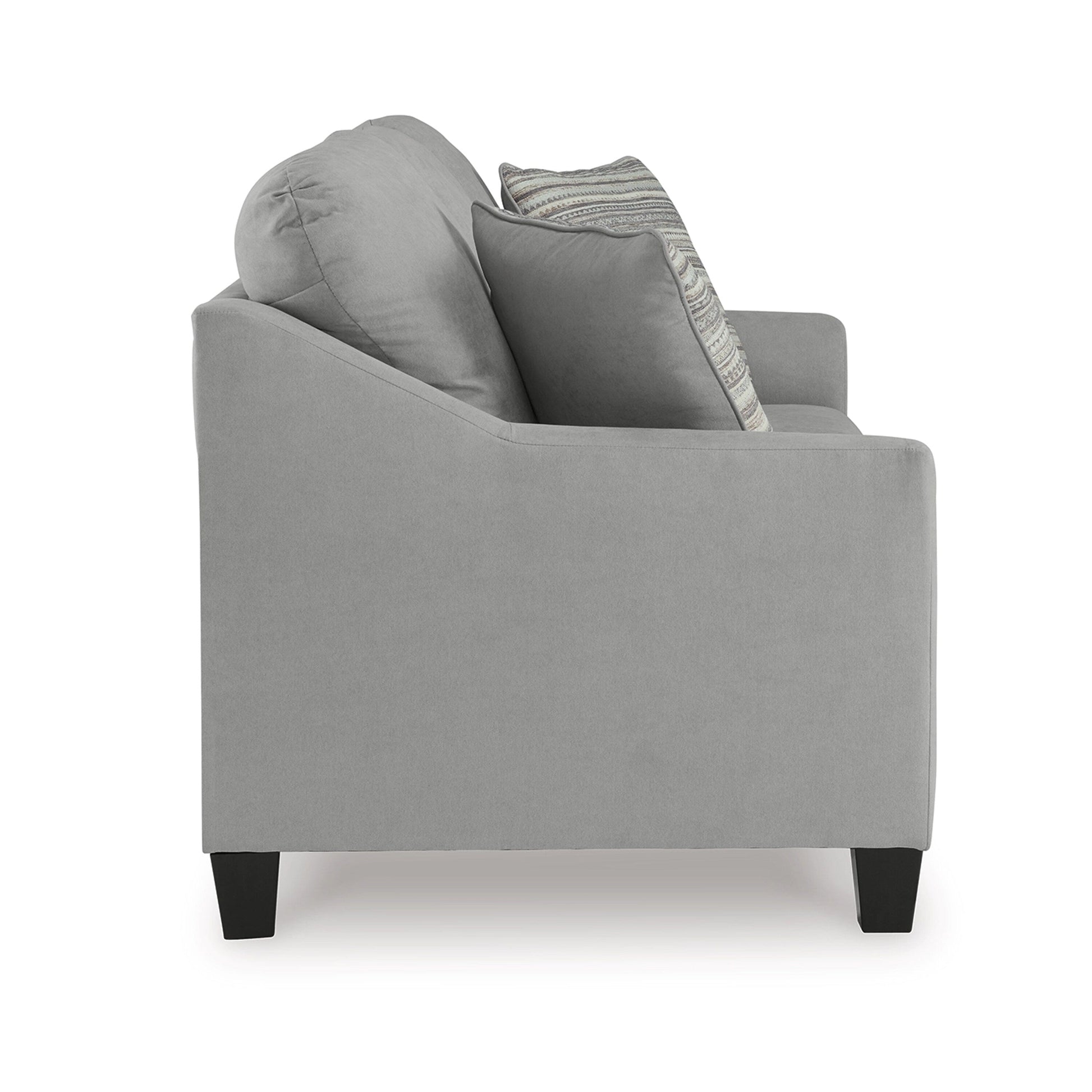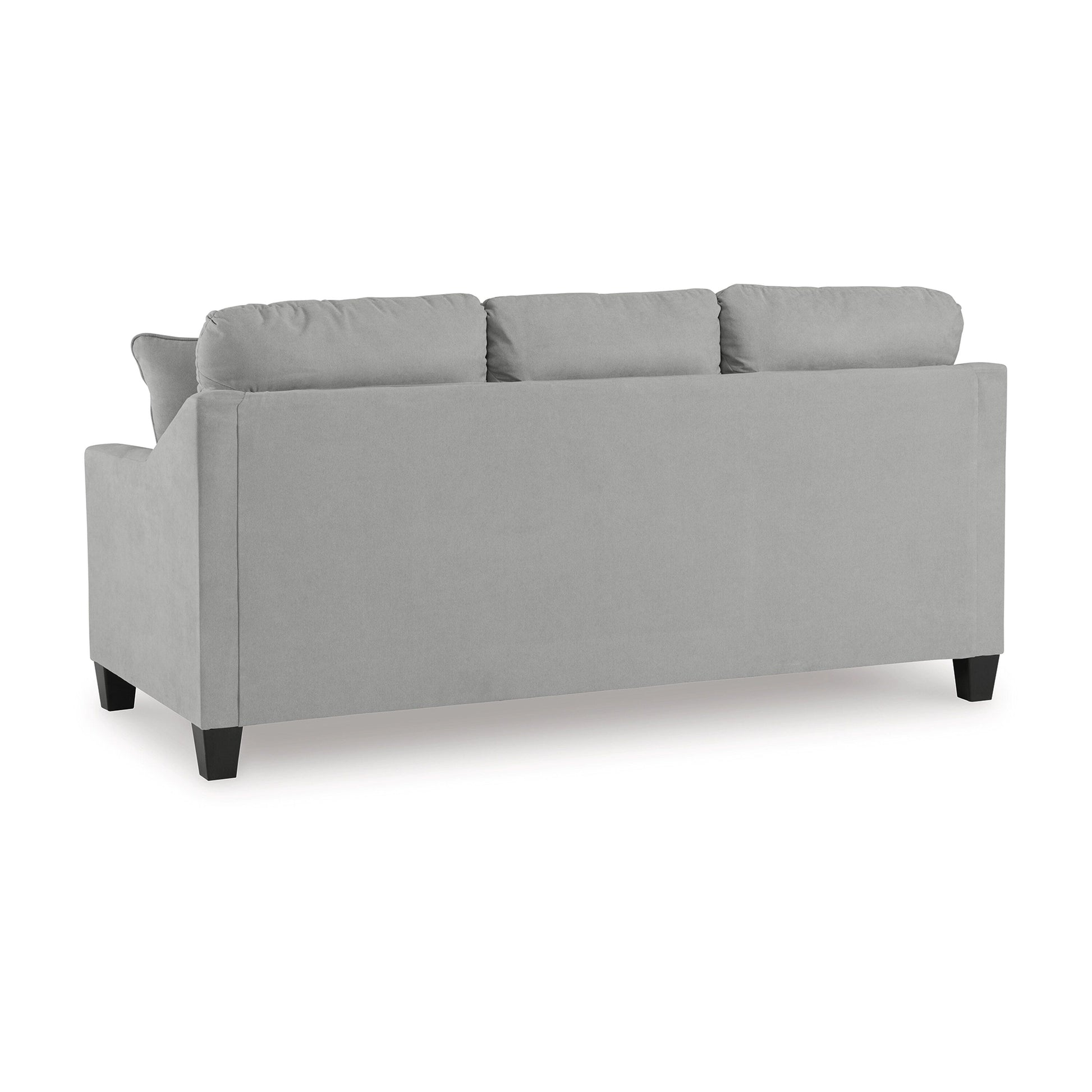 • Soft polyester upholstery with a suede-like gray color