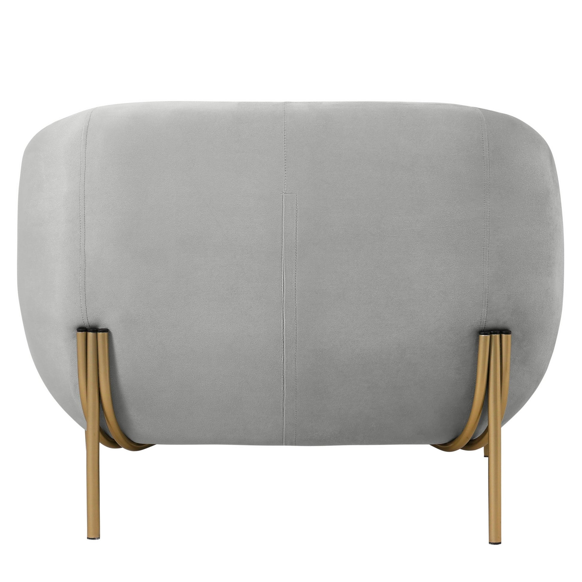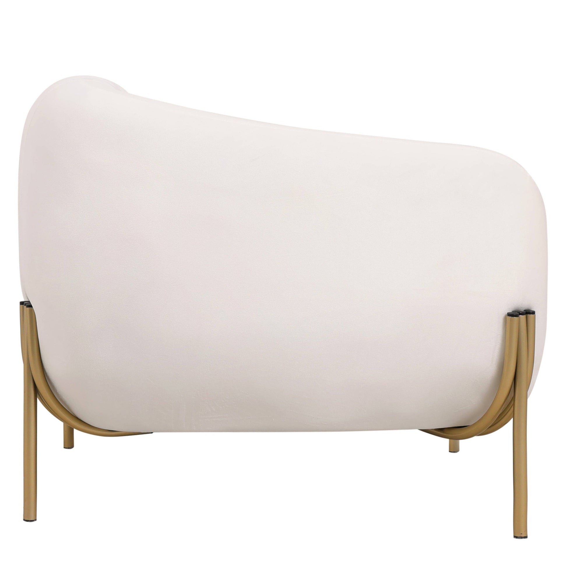 Elegant Design This accent chair features a continuous design with a curved backrest, armrests, and seat connected smoothly without visible breaks. The elegant structure is supported by a reinforced gold metal base, which connects the seat to the legs for added stability. The base also includes rubber components at the top, which act as a protective buffer to reduce friction and prevent wear on the upholstery.
