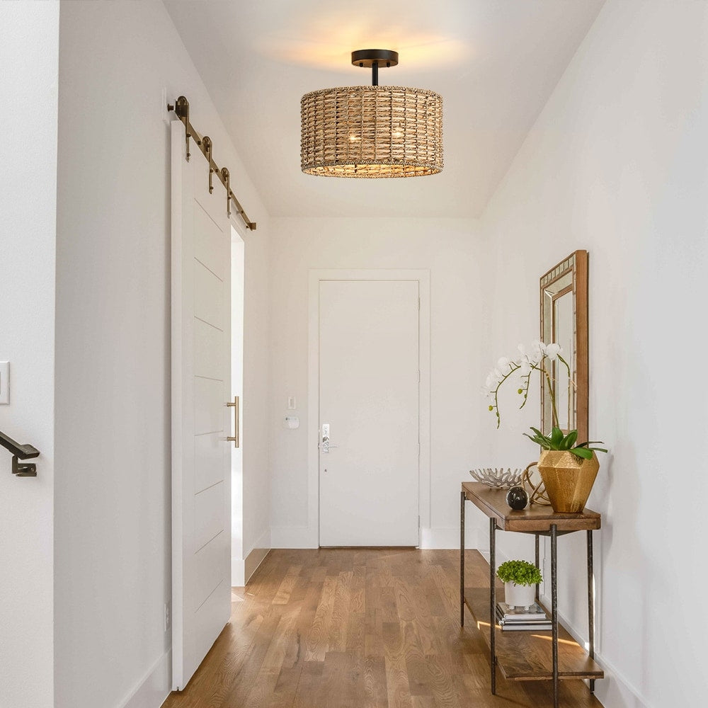 Nothing adds warmth and a casual inviting vibe like a natural woven semi-flush mount ceiling light.
