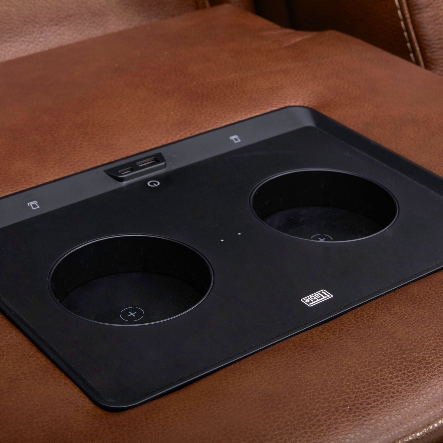 Experience exceptional comfort and functionality with the Caswell dual zero gravity power recline sofa with power articulating headrest. Designed to enhance your well-being, the sofa features dual zero gravity power recline technology that promotes improved blood flow and posture, offering unparalleled relaxation. Entertainment meets sophistication with built-in, hidden Bluetooth speakers that seamlessly pair with your devices upon approach. Immerse yourself in surround sound for movies or enjoy your favorite music with exceptional clarity. For added convenience and versatility, the center seat back is powered and folds down to reveal a state-of-the-art iTable. This innovative feature includes two wireless charging pads that transform into cupholders at the touch of a button, along with a USB-A and USB-C charging port for effortless device charging. Additional USB-A and USB-C ports at each end of the sofa ensure all your gadgets stay powered. Enhancing functionality further, the center seat headrest flips up to unveil two multi-strength and adjustable reading lights, perfect for cozy evenings with a book. Thoughtful storage solutions abound with hidden compartments in the padded arms, allowing you to keep essentials close at hand yet neatly organized. The sofa is as stylish as it is comfortable, boasting a deep channeled pull in back design, double-layered headrests, and bucket seating that cradles you in luxurious support. The sofa features contrast single needle and T-stitching that enhances its sleek appearance. Elevate your home entertainment experience with the Caswell dual zero gravity power recline sofa with power articulating headrest, where cutting-edge technology meets timeless comfort for a truly exceptional seating solution. Product Details â?Dimensions: Width 91â?x Depth 40â?x Height 42â?br>Item Features â?Dual Zero Gravity Power Recline w/ Power Articulating Headrest â?Hidden Bluetooth Speakers Placed Under Arm Frame â?Automatically Pairs to Devices Upon Walk Up â?Outward Open Padded Arms with Hidden Storage â?Power Drop Down iTable â?2 Wireless Chargers Convert to Cupholders with Push of Button â?Center Headrest Flips Up to Reveal Multi Strength Reading Lights â?Weight Capacity: 350lbs per Seat