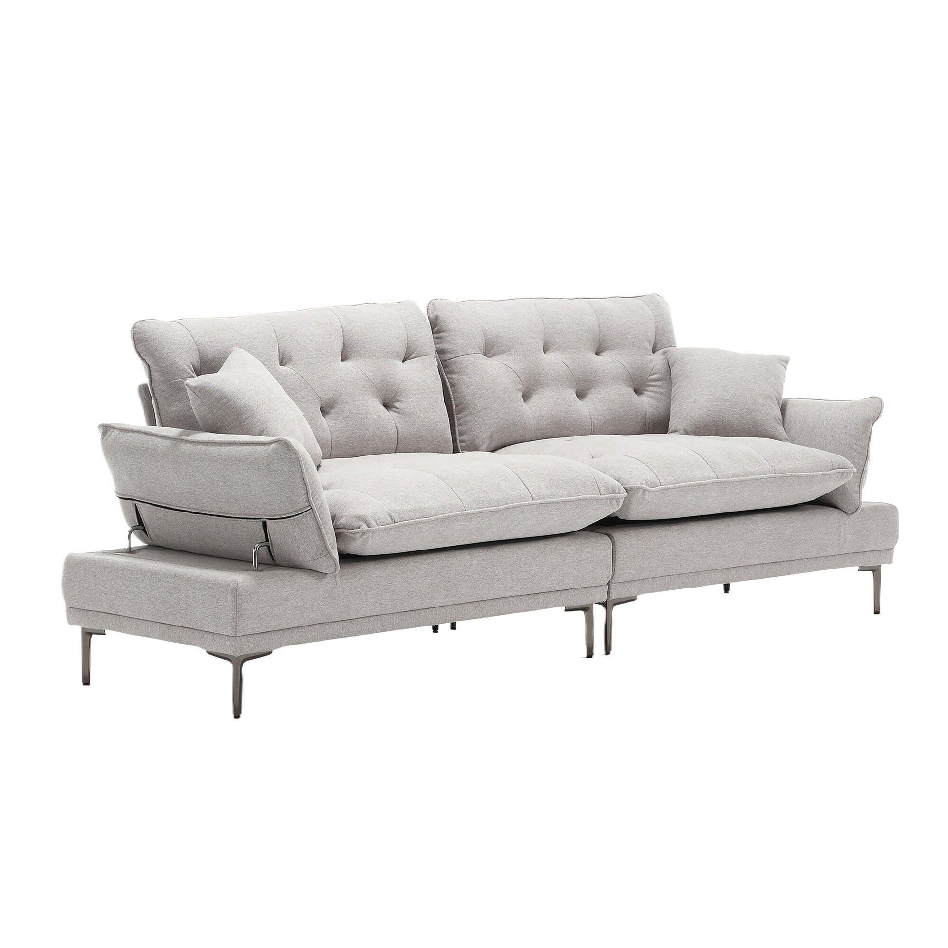 Light Gray Linen Loveseat Sofa with Adjustable Armrests