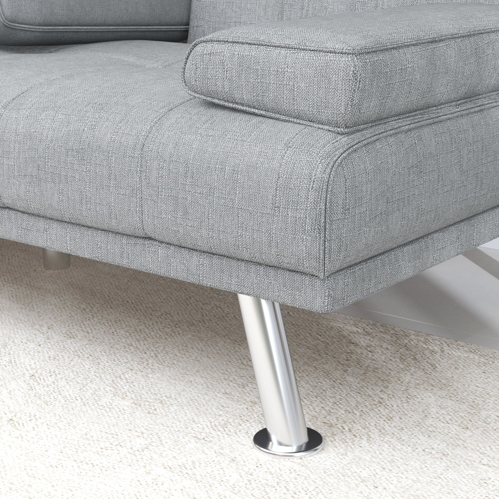 Light Grey Upholstered 66 Loveseat Sofa Bed with 2 Cup Holders and Stainless Legs for Living Room