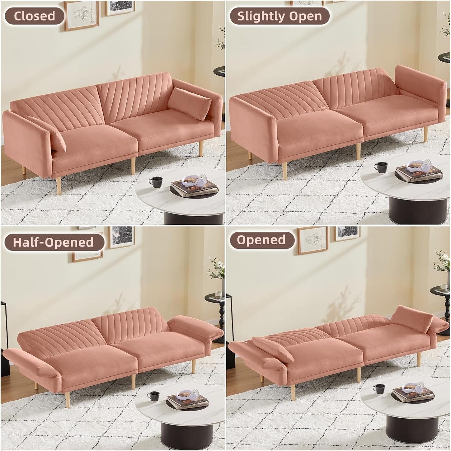 Light Pink Loveseat Futon Convertible Sofa Bed with Pillows