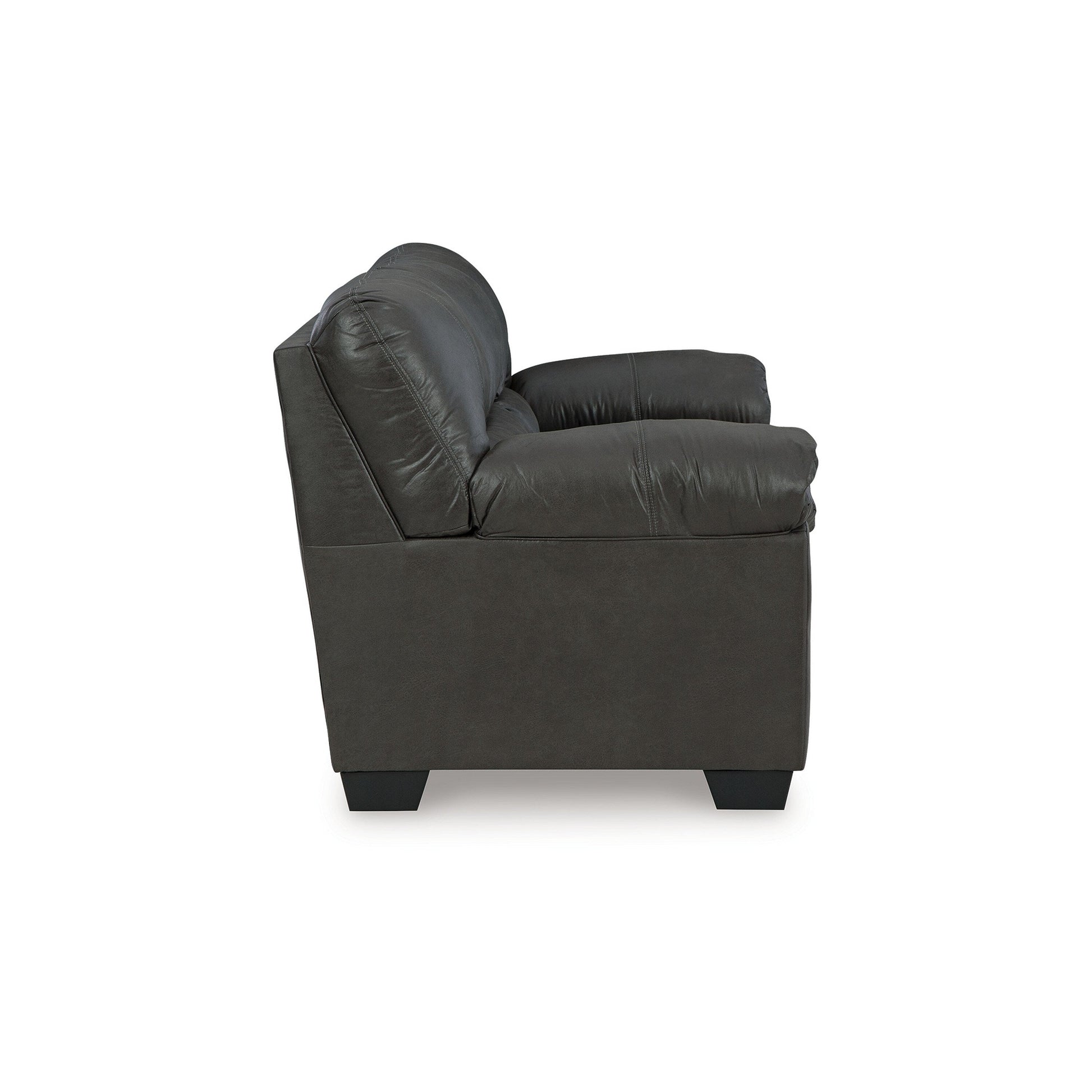 Add a touch of sophistication and warmth to your space with this stylish and elegant sofa, featuring gray faux leather upholstery. It offers plush cushions, a smooth rocking motion, and an easy tab-pull reclining mechanism. With a sturdy corner-blocked frame and metal-reinforced seat, this recliner ensures long-lasting durability. Explore our Limu collection for more options.