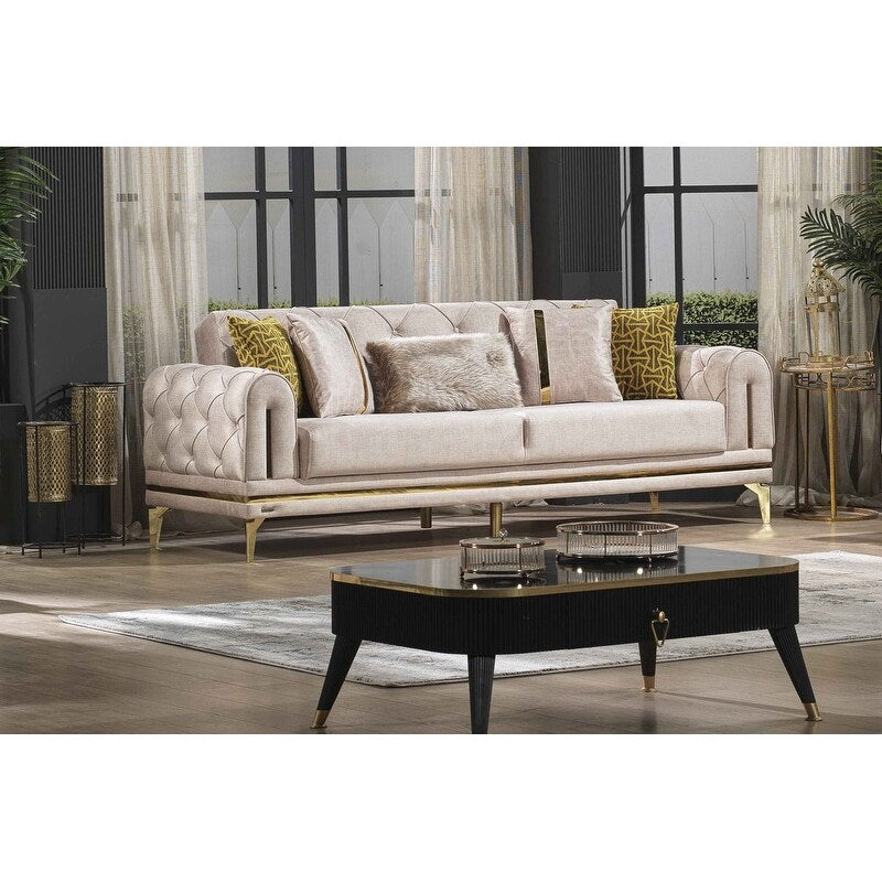 Lincove Velvet Upholstered Sofa - Durable Construction - Beige