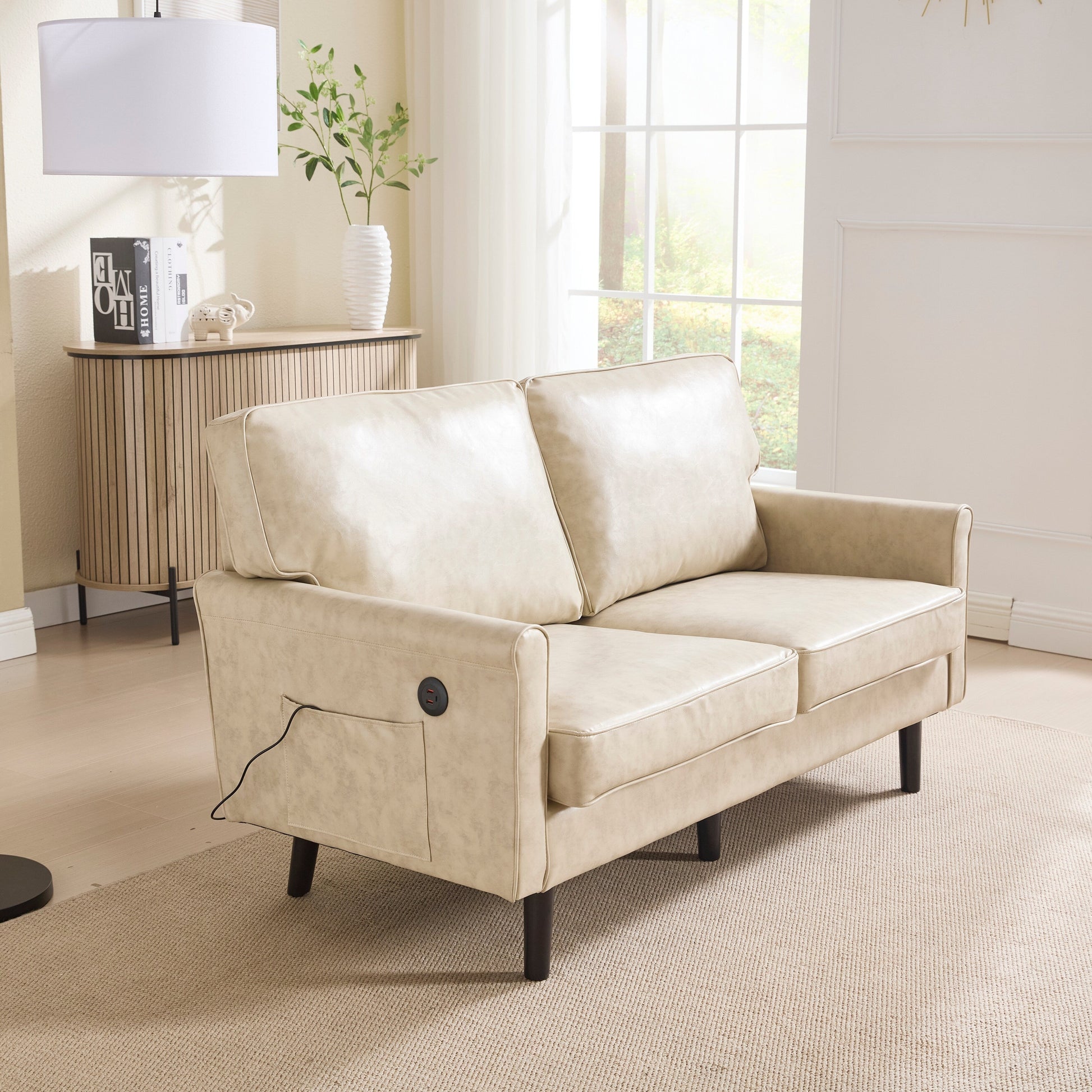 Multifunctional Sofa & Wood Legs: This loveseat is equipped with USB & Type C ports, easily charge your phone at work or at leisure. Our couches features sturdy structure, strong solid wood legs ensures stability and easily support up to 550 lbs.