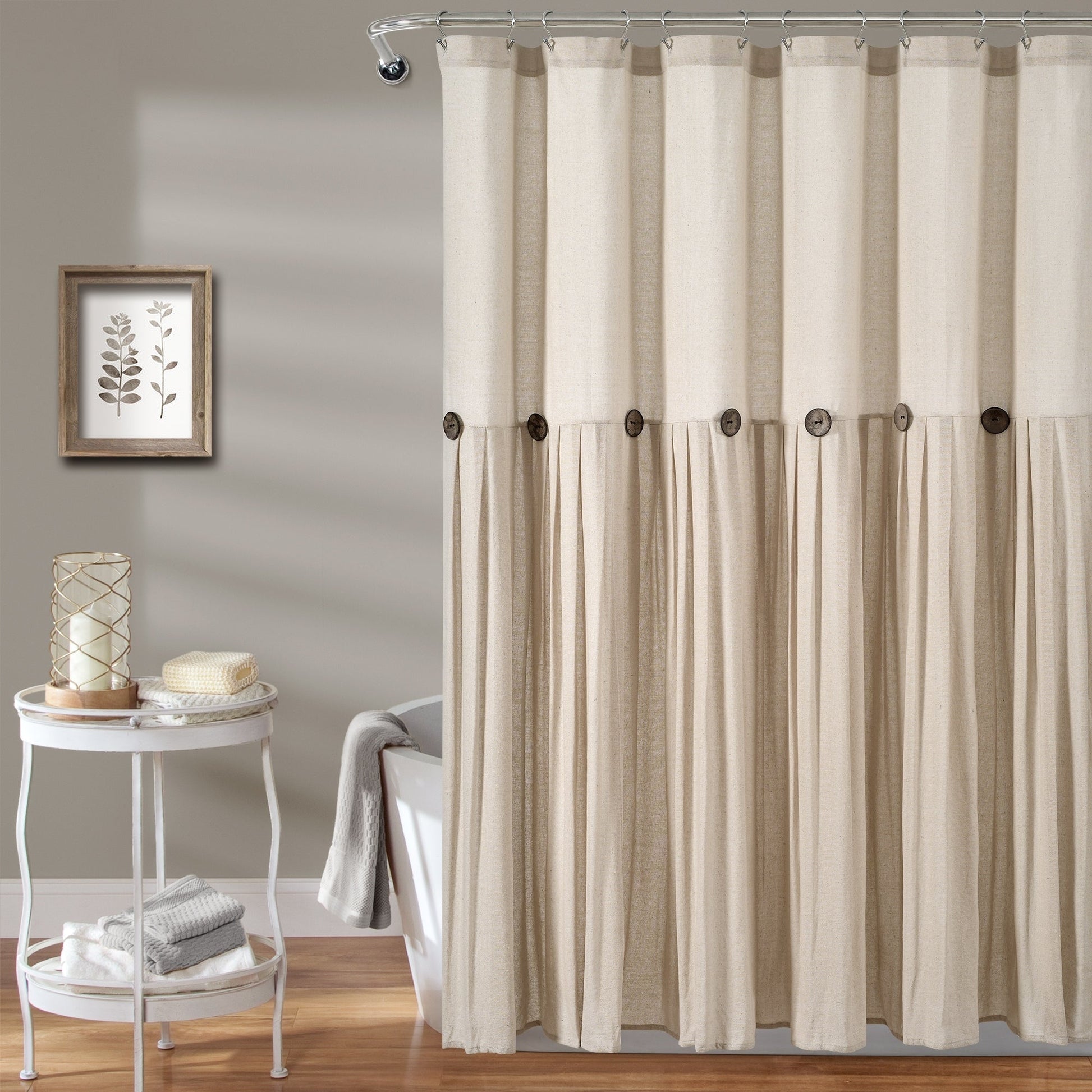 Add a touch of casual elegance to your bathroom with this Lush Decor Two-tone Linen Button Shower Curtain. With its charming button embellishments and pleating, this shower curtain is perfect to brighten up your bathroom décor. Made of a high-quality cotton/polyester blend fabric, this curtain comes in various two-tone color options to best match your bathroom's color scheme. This shower curtain is machine washable and easy to maintain.