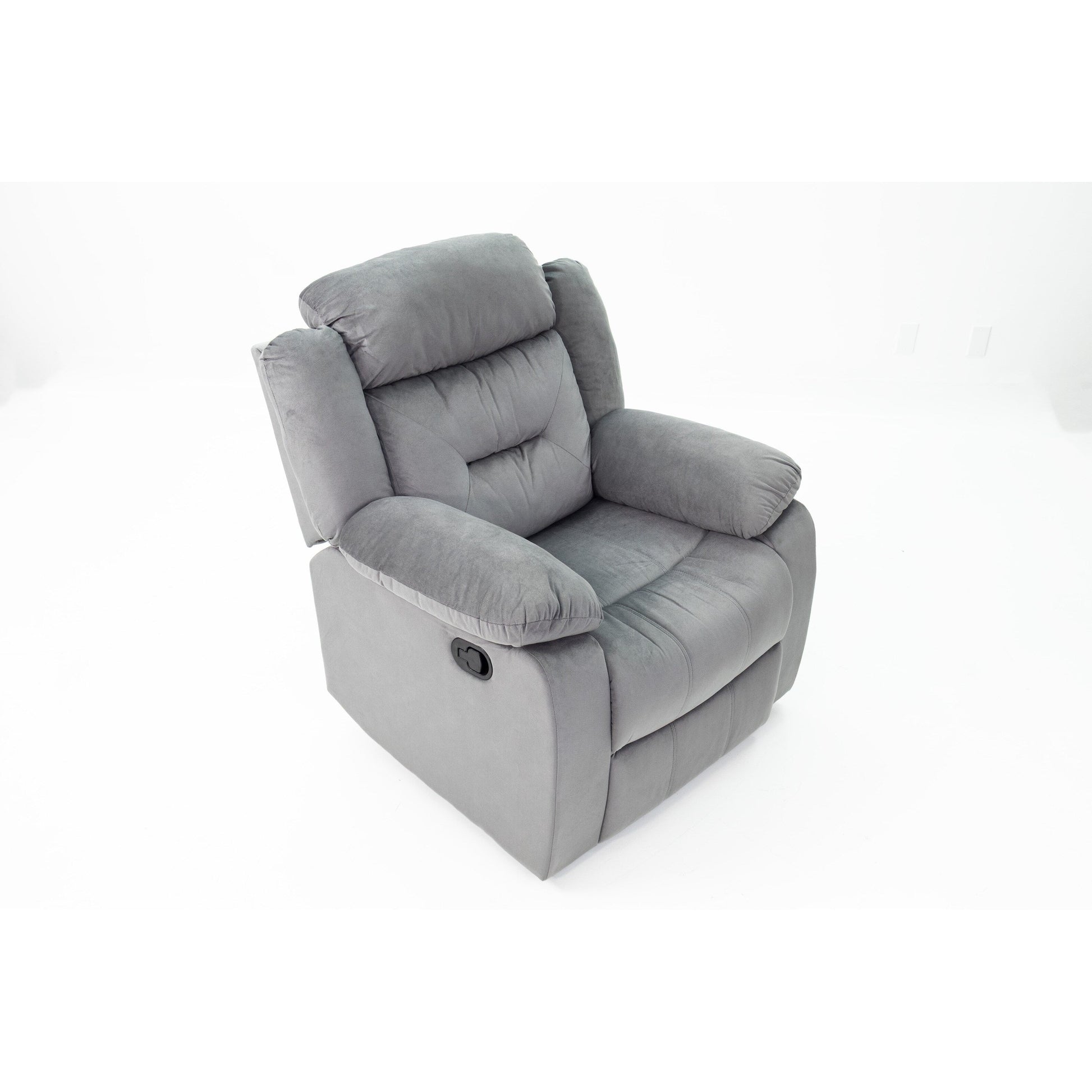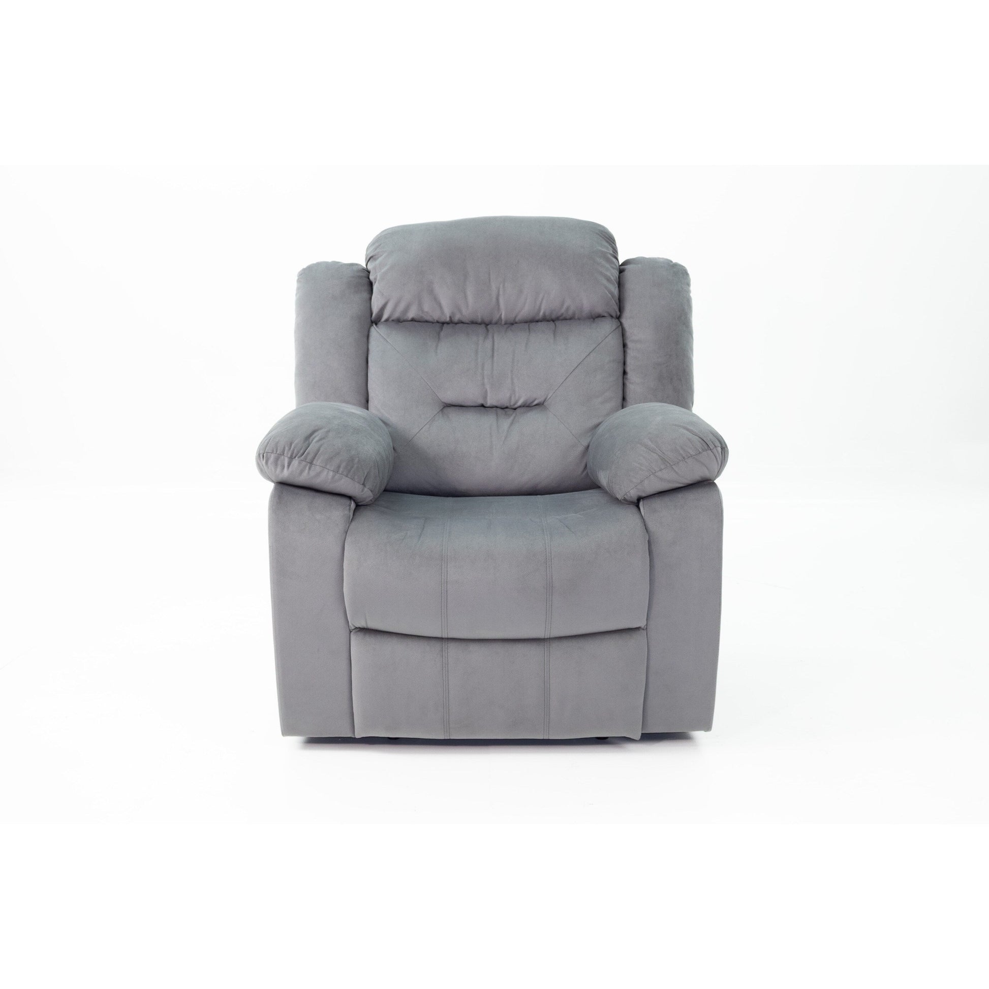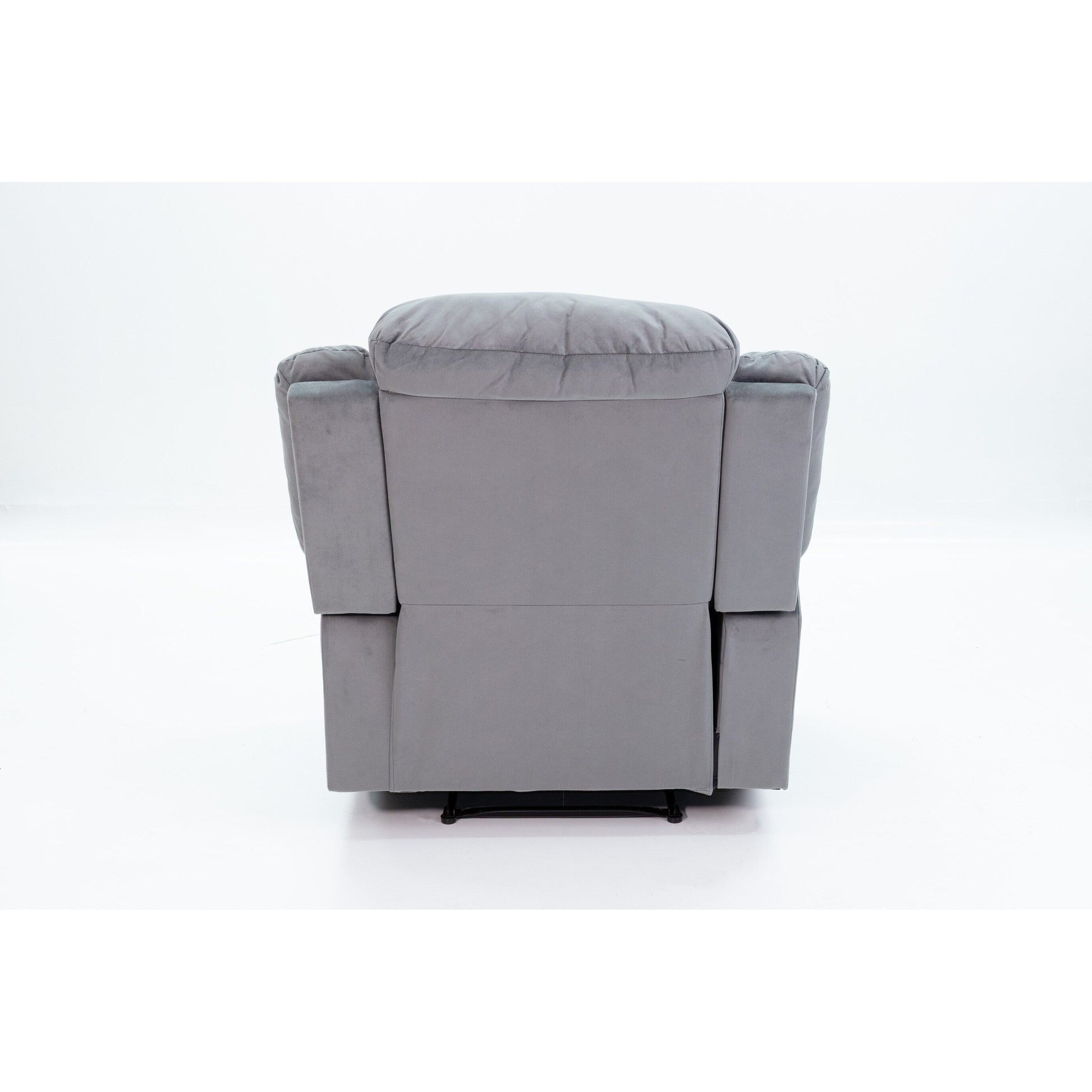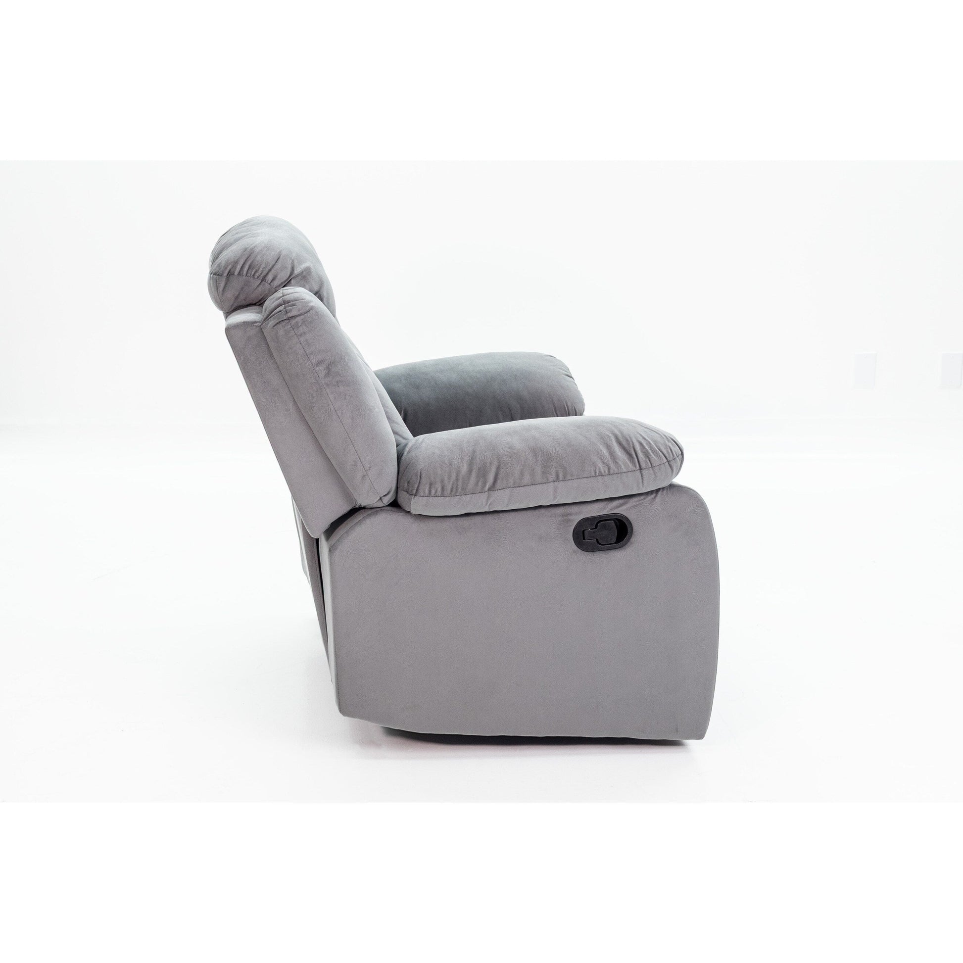 This single recliner is the epitome of comfort and style, designed to provide you with the ultimate lounging experience. Whether you're watching your favorite TV show, reading a book, or simply unwinding after a long day, this recliner offers the perfect place to relax. The plush arm pillows, cushioned headrest, and supportive backrest are all designed to provide maximum comfort and support, ensuring that you can lounge for hours on end without any discomfort. The conveniently placed side manual handle allows you to easily adjust the recliner to your desired position, with minimal effort. The soft and opulent velvet material not only adds a touch of luxury to your living room but also enhances your lounging experience. This cozy yet stylish recliner is a versatile addition to any living room, complementing a variety of styles, from modern to traditional. It's the perfect piece of furniture to add a touch of comfort and style to your home.Whether you're catching up on your favorite TV show or enjoying a good book, you can easily find your ideal lounging position.Experience the ultimate relaxation with plush arm pillows, a cushioned headrest, and a supportive backrest designed for long-lasting comfort.The conveniently placed side manual handle allows you to smoothly transition to your ideal reclining position with minimal effort.Indulge in the softness and opulence of velvet material that enhances your lounging experience.A cozy yet stylish addition that complements a variety of living room styles, from modern to traditional.
