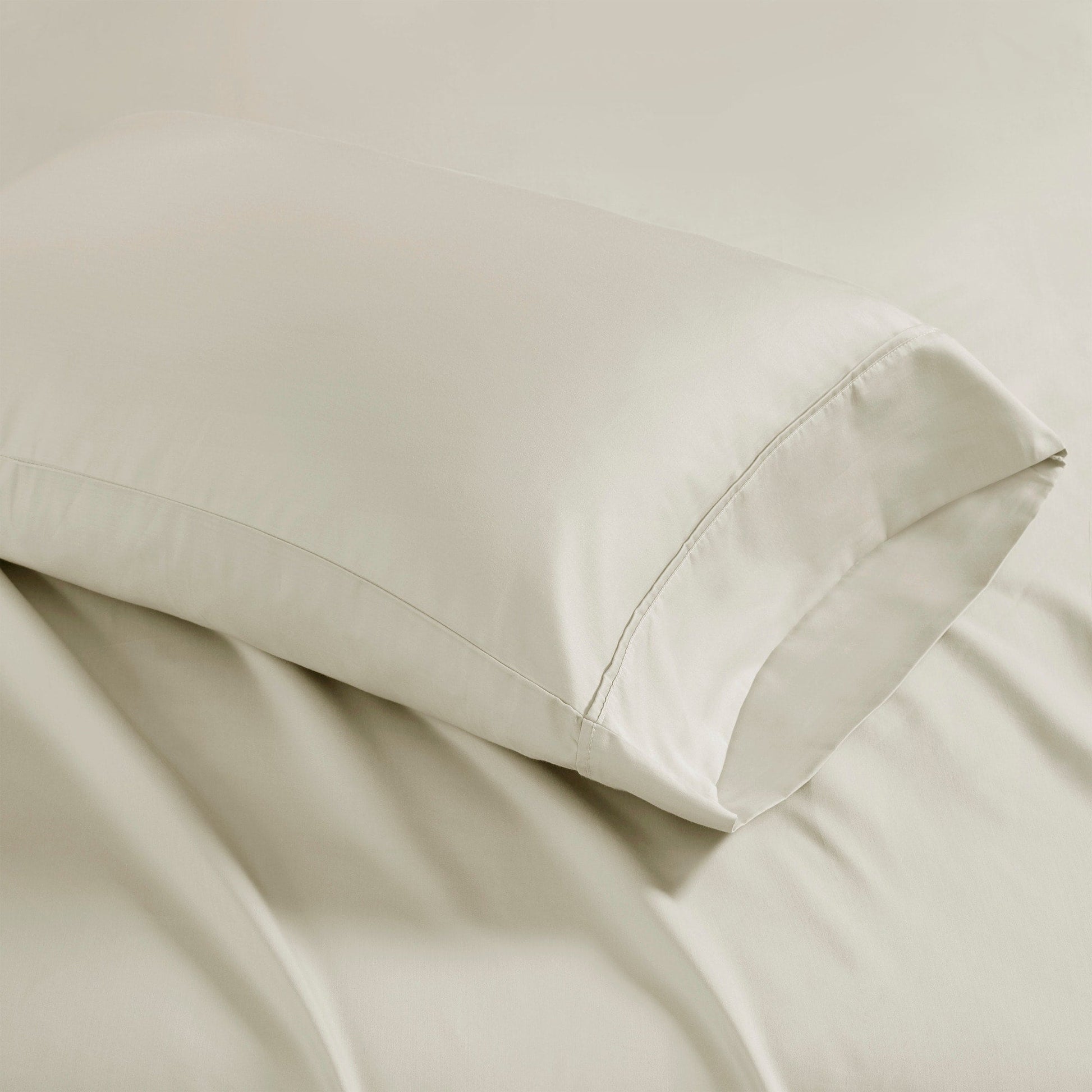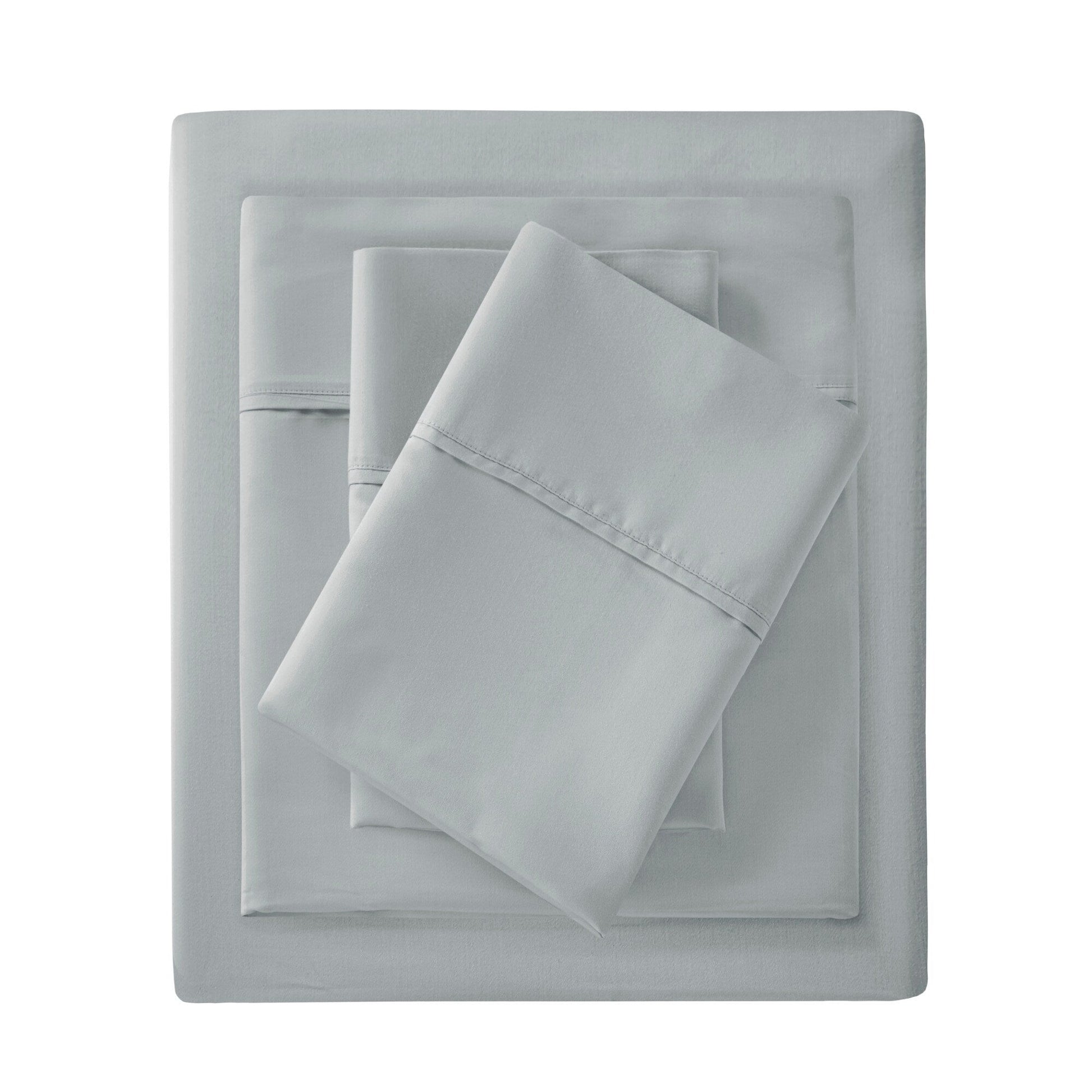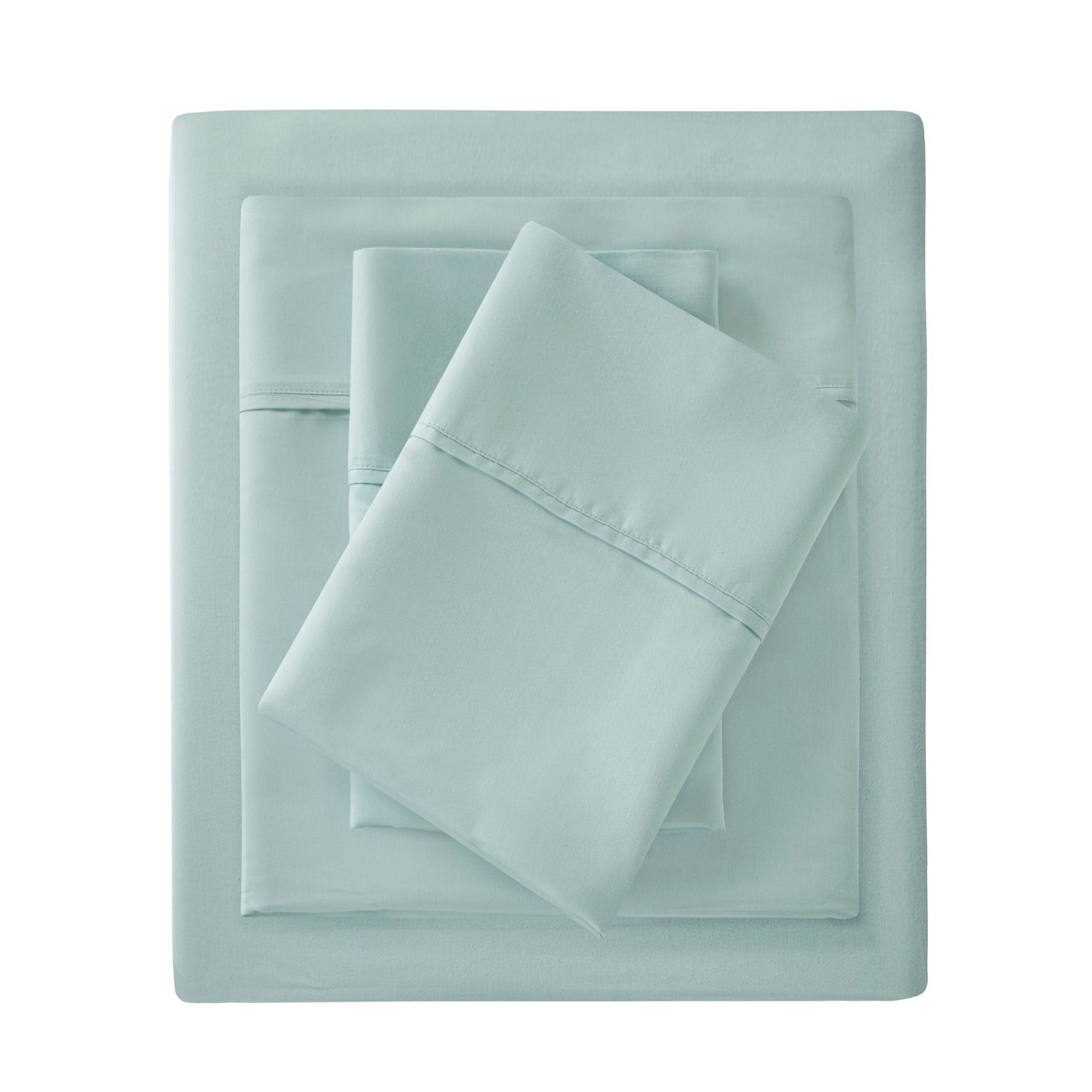 Set includes flat sheet, all-over elasticized fitted sheet and 2 pillowcases, additional matching pillowcases sold separately