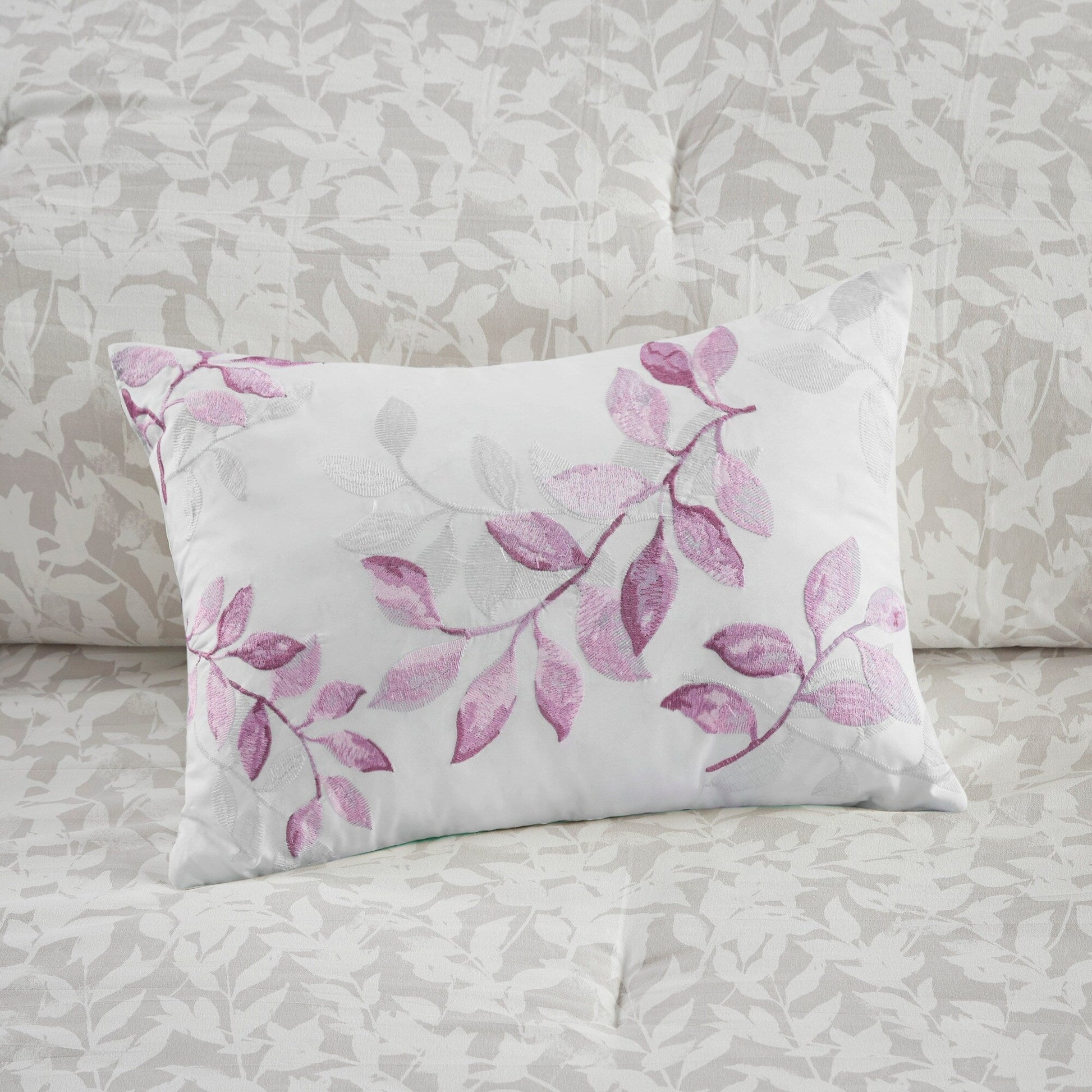 The Madison Park Essentials Thelma Reversible Comforter Set with Sheet Set offers a beautiful update for your entire bed. A botanical print, in soft purple hues, adorns the face and the reverse of comforter, creating two distinct and stylish looks. The matching reversible shams (1 in Twin Sizes) coordinate perfectly with the comforter, while an oblong decorative pillow adds the finishing touch. Also included is a patterned purple sheet set that completes this reversible bedding set. Bringing the best in health and wellness, this bedding set also features an anti-microbial treatment that provides built-in freshness protection, reducing the growth of odor causing bacteria and keeps fabric lasting longer. Use a steam iron to help remove wrinkles easier.