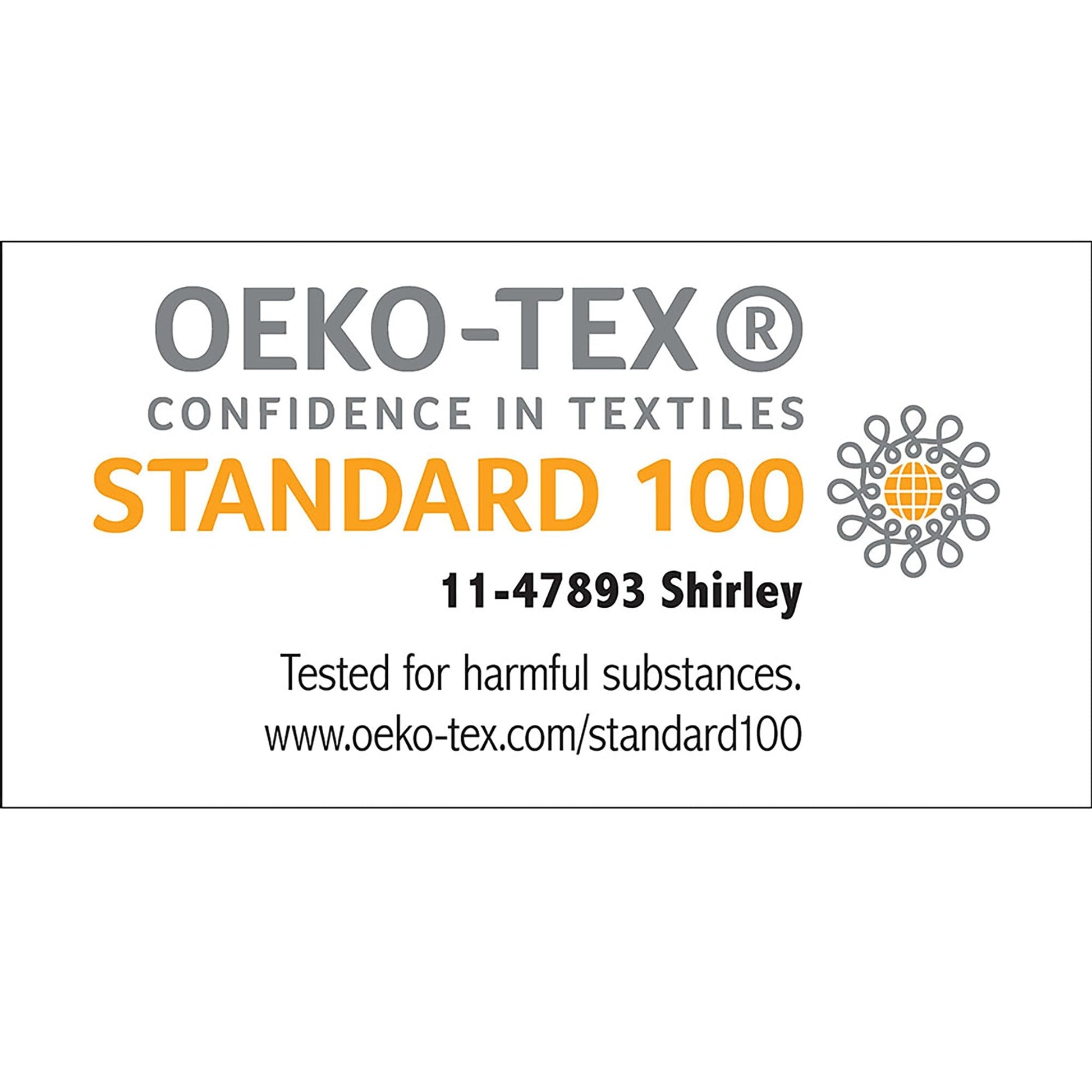 Oeko-Tex Certified, includes no harmful substances or chemicals (# 11-47893)