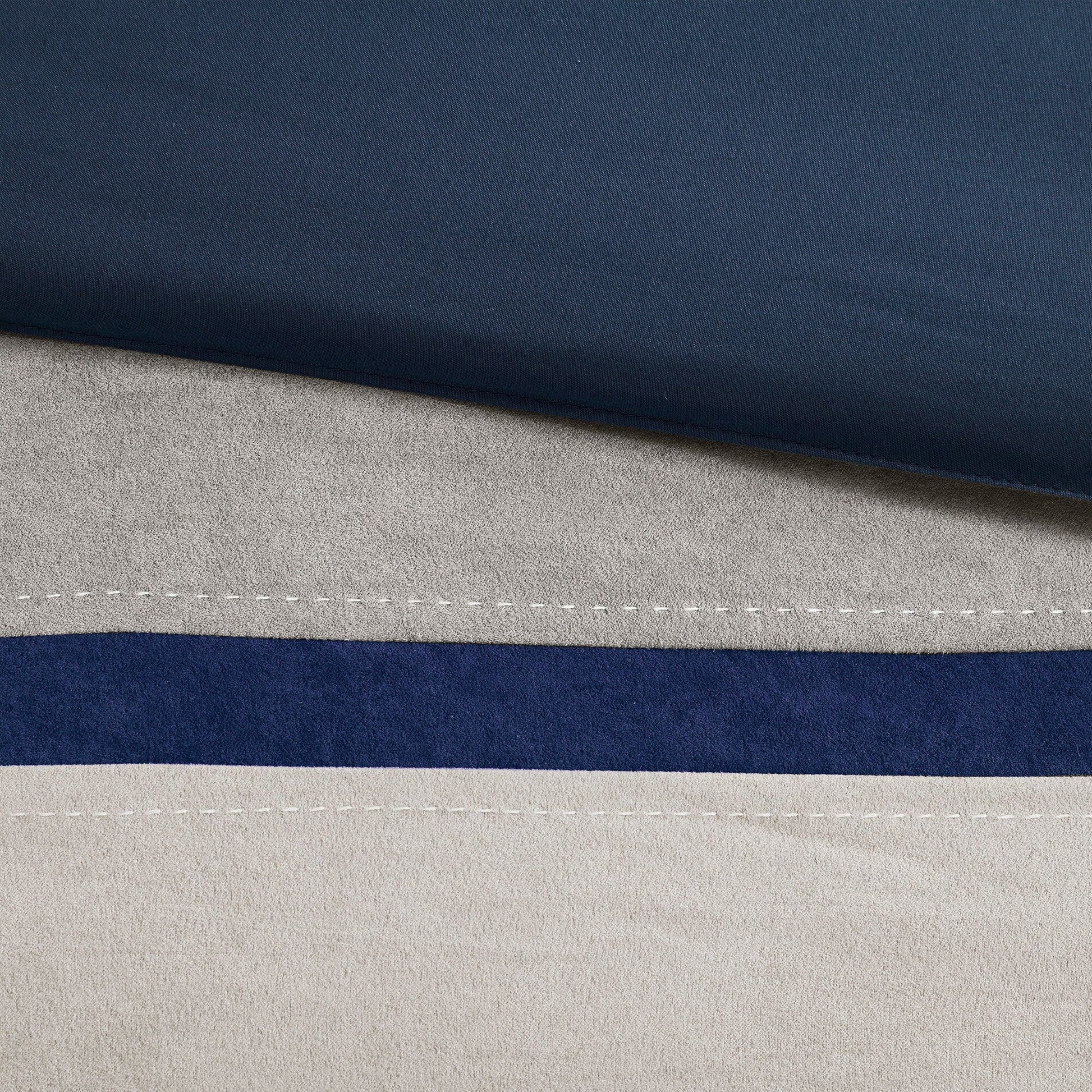 Colorblock comforter set in top stitching details on the comforter