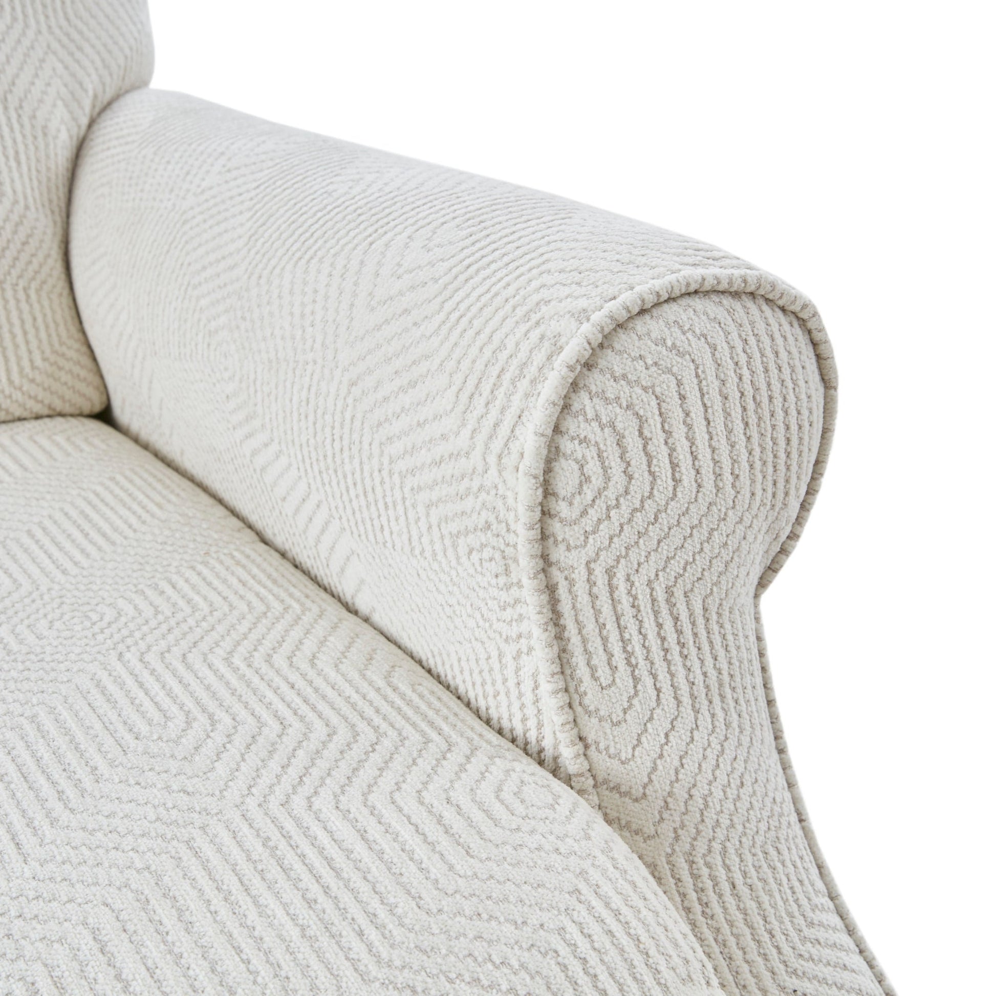 Forget about the notion that recliners don't fit into traditional decor and instead kick back and relax in this Madison Park Jimmy ivory recliner. Filled with soft foam and upholstered in jacquard polyester fabric, this recliner feels relaxing and soft to the touch. The high back and elegant round arms of the chair give it a refined traditional style silhouette that is enhanced by its sturdy carved wood legs. The ivory color of this piece makes it ideal for rooms decorated in white and off-while color palettes. ?