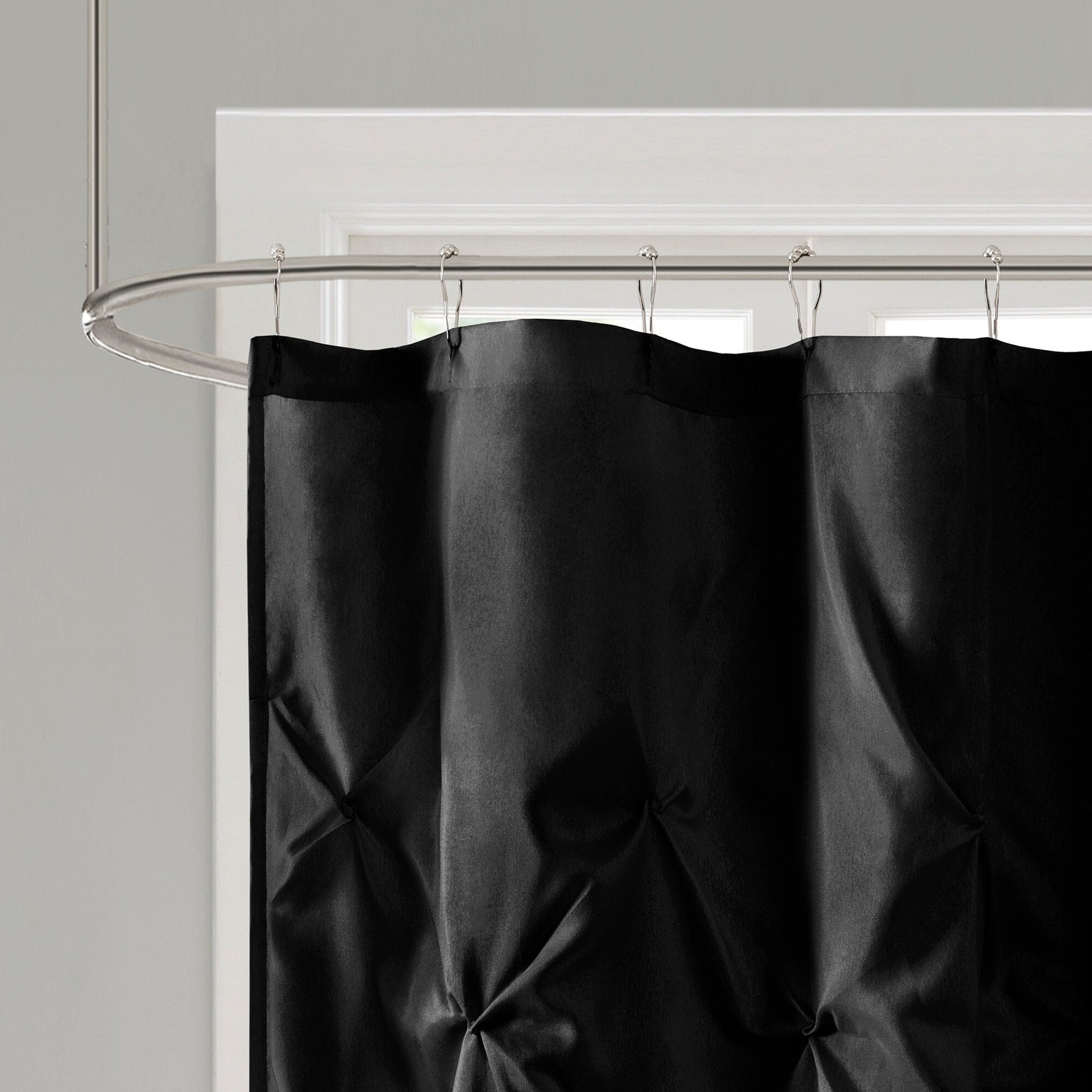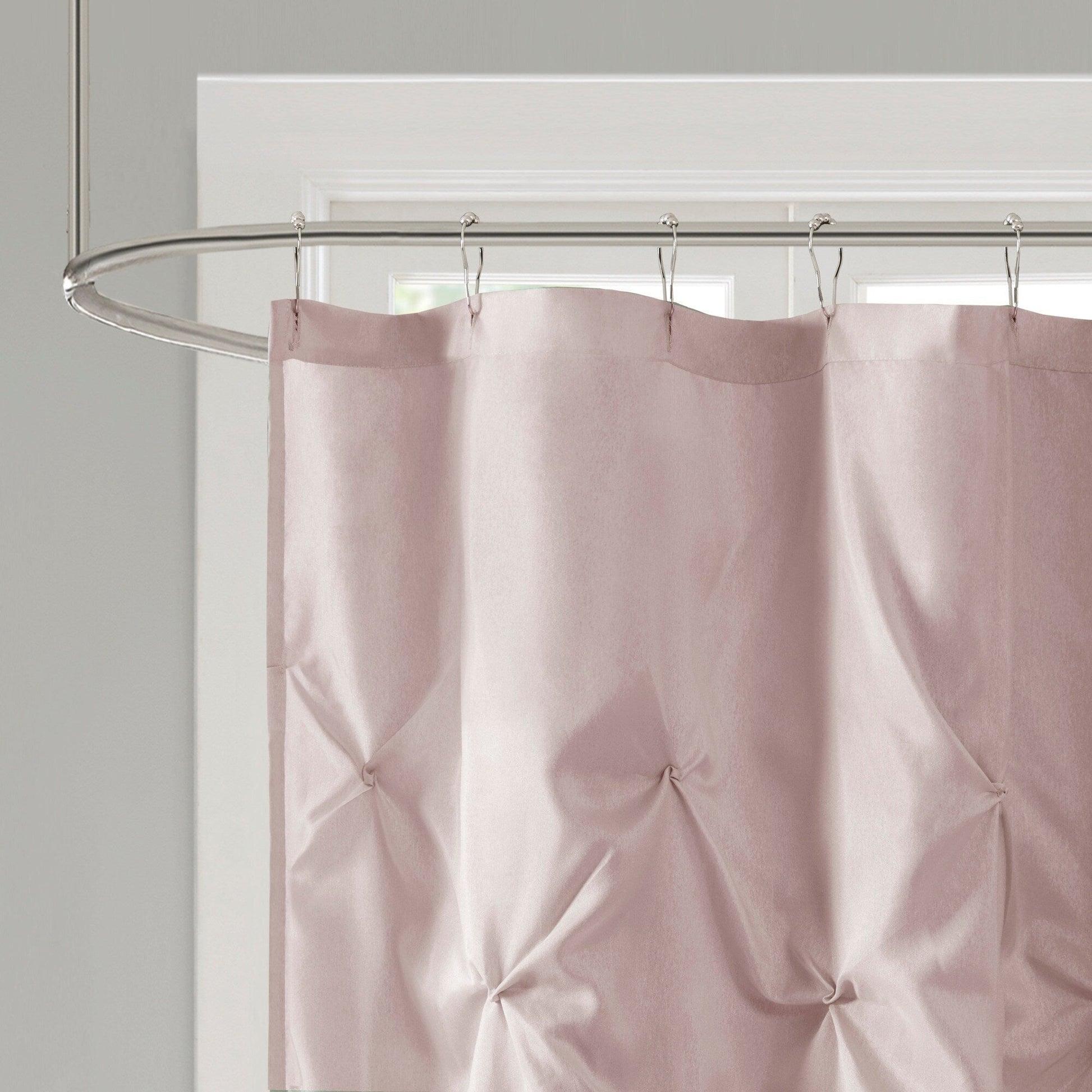 Carry a pin-tucked theme over from the bedding in your master bedroom to your master bath with this glamorous shower curtain from Silver Orchid. The pin-tucked design gives this shower curtain extra depth and texture to lend a touch of character to your bathroom, and it comes in multiple colors for easy matching. Just toss this shower curtain into your washing machine as needed. It works with standard hooks, making it simple to use with a standard shower curtain rod. A water repellant liner is not included and highly recommended. All 72-inch width sizes feature a standard of 12 button holes, while our special 54-inch width features 9 button holes and 108-inch extra width size features 18 button holes.