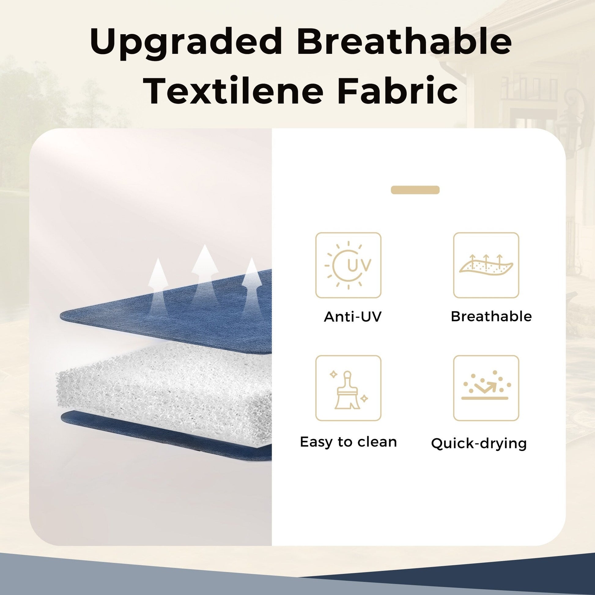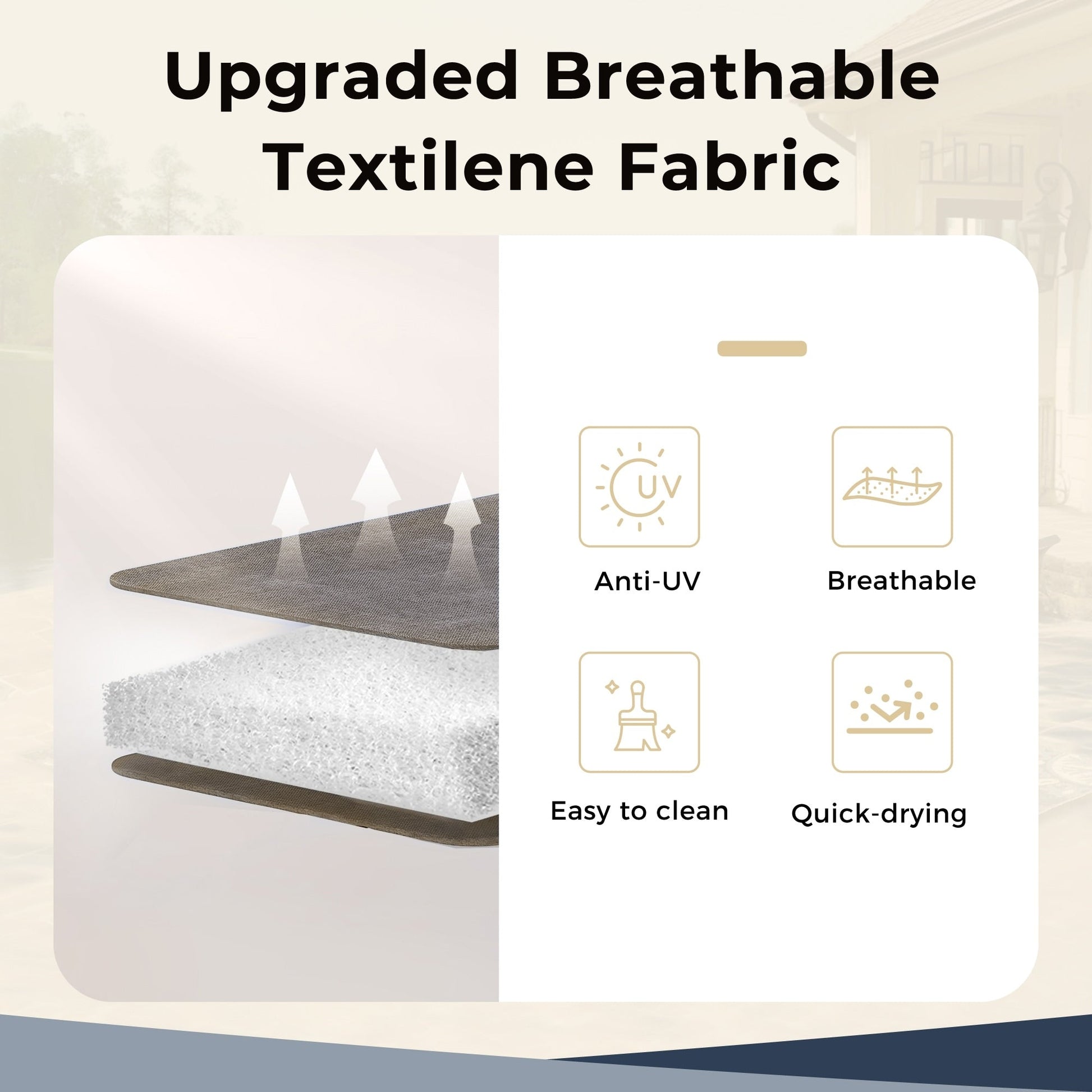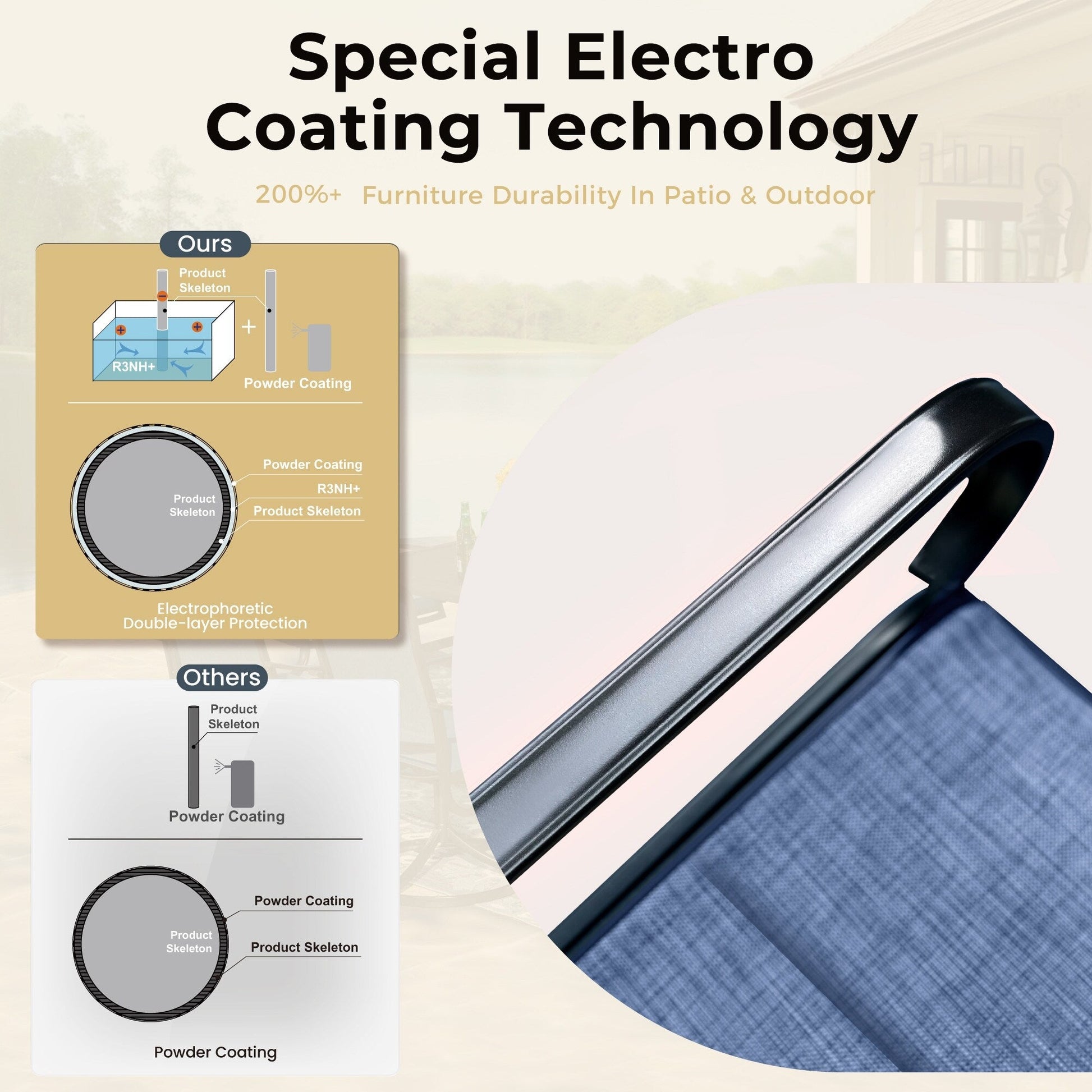 This stately, modern patio dining set will elevate the look and comfort of any outdoor space. The chairs feature breathable, padded sling fabric seats, and they swivel 360 degrees for convenient, varied use. The table has an umbrella hole, giving you the option to add an umbrella for shade on hot summer days.