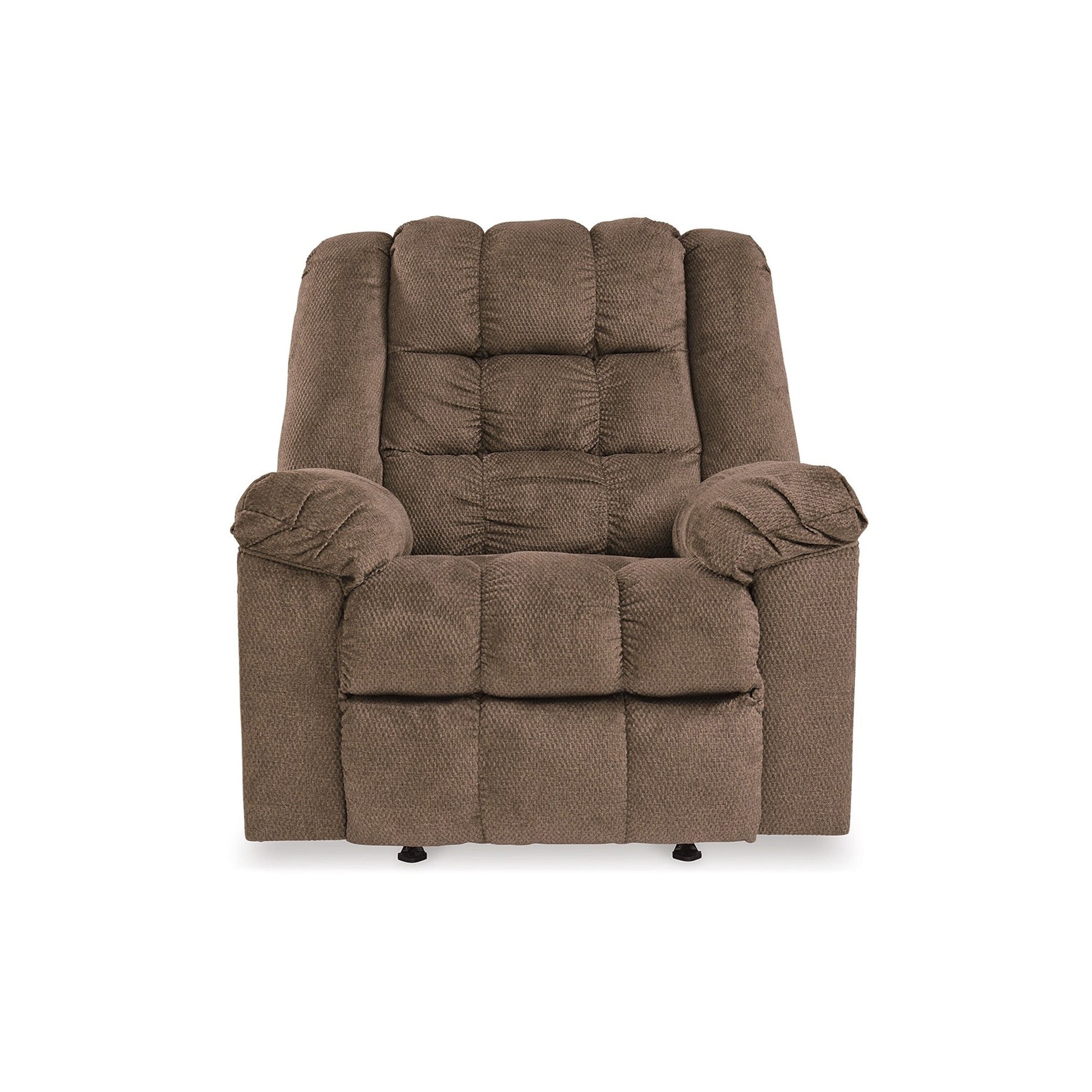 Unwind in ultimate comfort with this manual rocker recliner chair, featuring plush tufted autumn brown polyester upholstery and pillow-top armrests. A pull lever smoothly reclines the chair, while a hand-held remote activates the built-in lumbar heat and massage functions with adjustable intensity settings. The metal-reinforced seat ensures long-lasting support, making it a perfect addition.