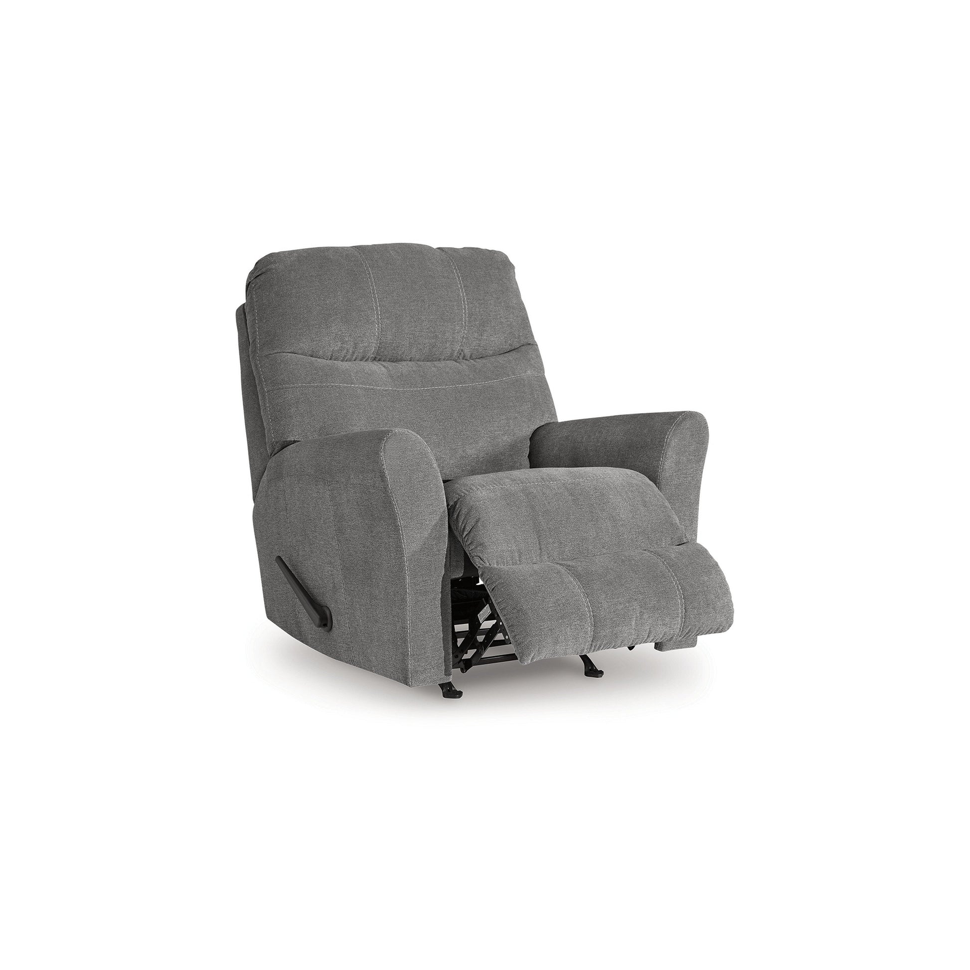 Marlow Manual Recliner Chair, Pull Rocking Motion, Gray Polyester