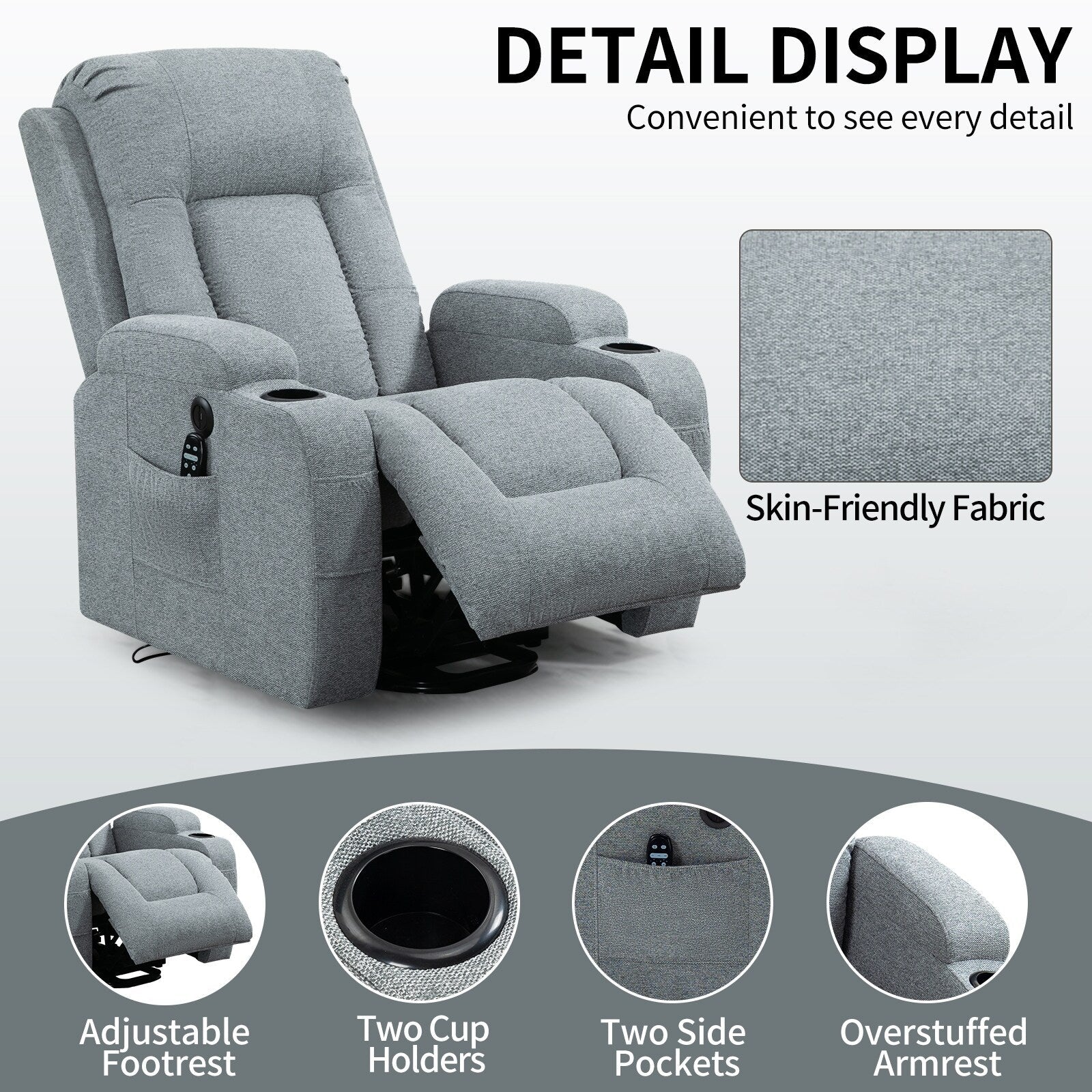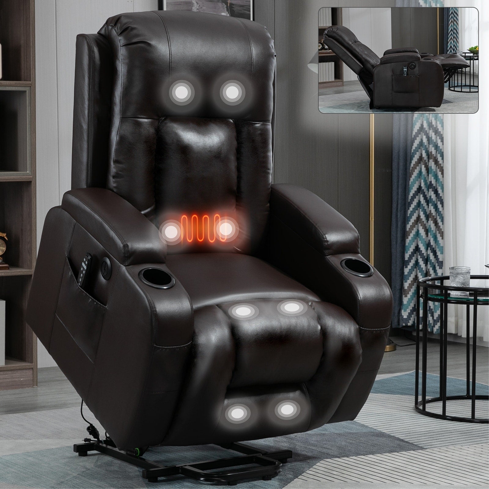 It features 8-point vibrating massage with 3 modes, a lumbar heating pad for circulation, a USB port for charging devices, and dual cup holders. The high 31.1' backrest and wide square armrests provide extra comfort and support, making it ideal for everyday relaxation and recovery.