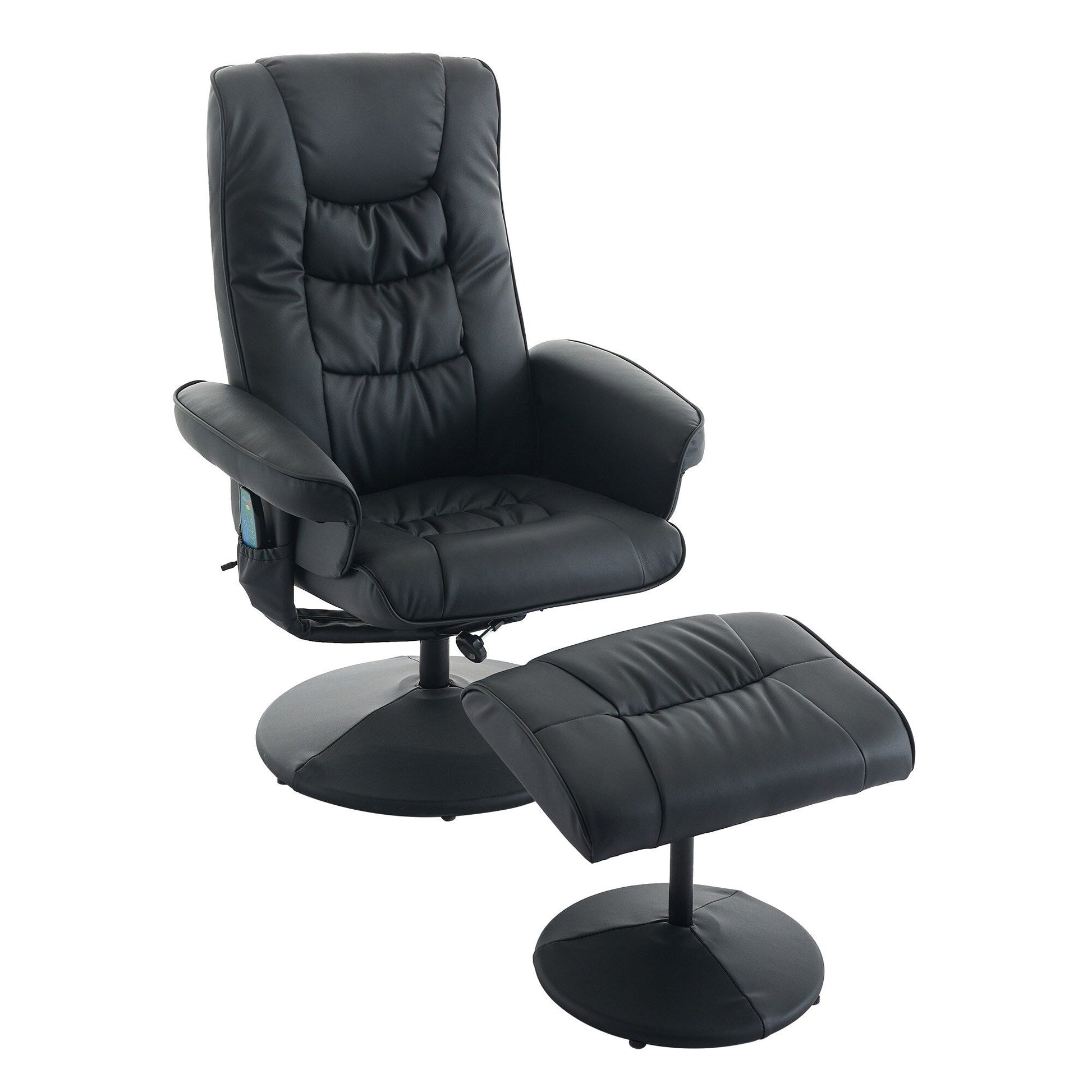 This reclining chair with ottoman features a 360 ° swivel base and a 140 ° adjustable backrest, allowing you to customize your relaxation experience. It includes a remote-controlled massage system with 5 vibration modes, seat heating, and a timer function for added comfort. Upholstered in high-quality PU leather, this chair offers a luxurious seating experience. Ideal for home, office, or relaxation spaces.
