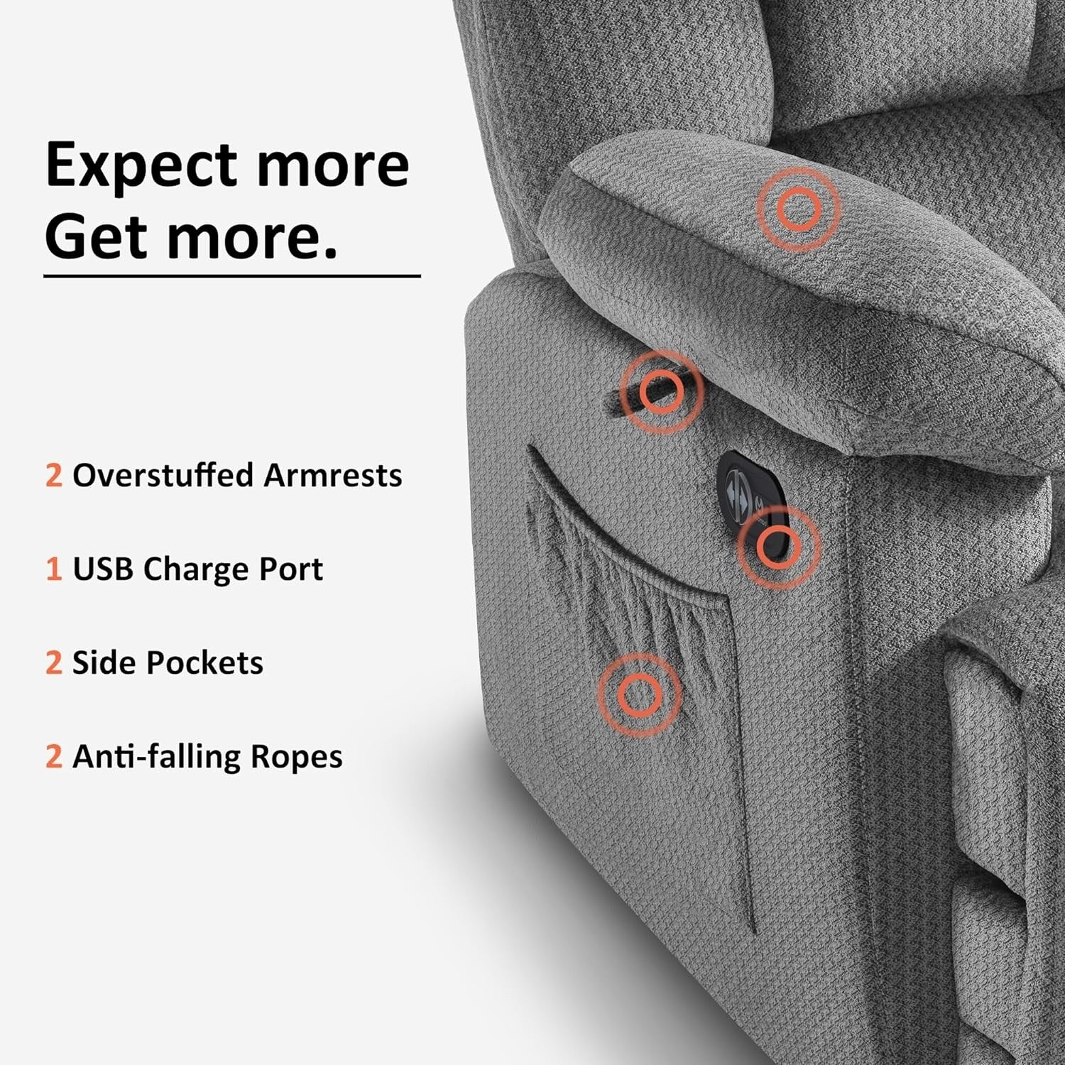 Power Recliner Chair: With just a push of 2 buttons build on the armrest, you can easily adjust the backrest and footrest of this electric recliner chair to find your perfect relaxation position. Max reclining angle: 155°.