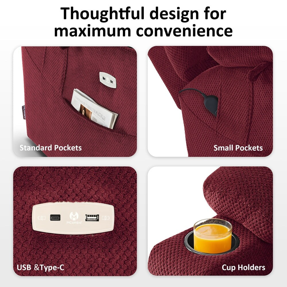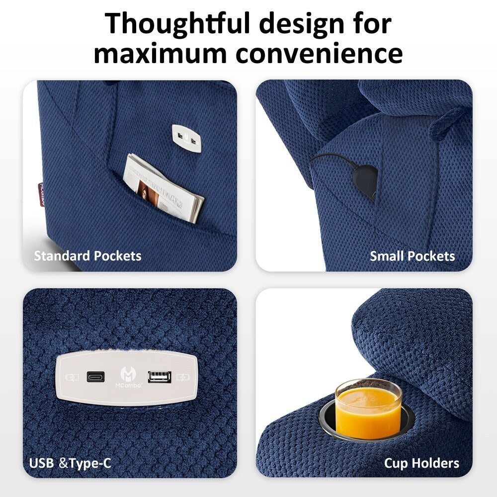 MCombo Large Dual Motor Power Lift Recliner Chair with Massage and Dual Heating for Big and Tall Elderly People, Fabric 7634