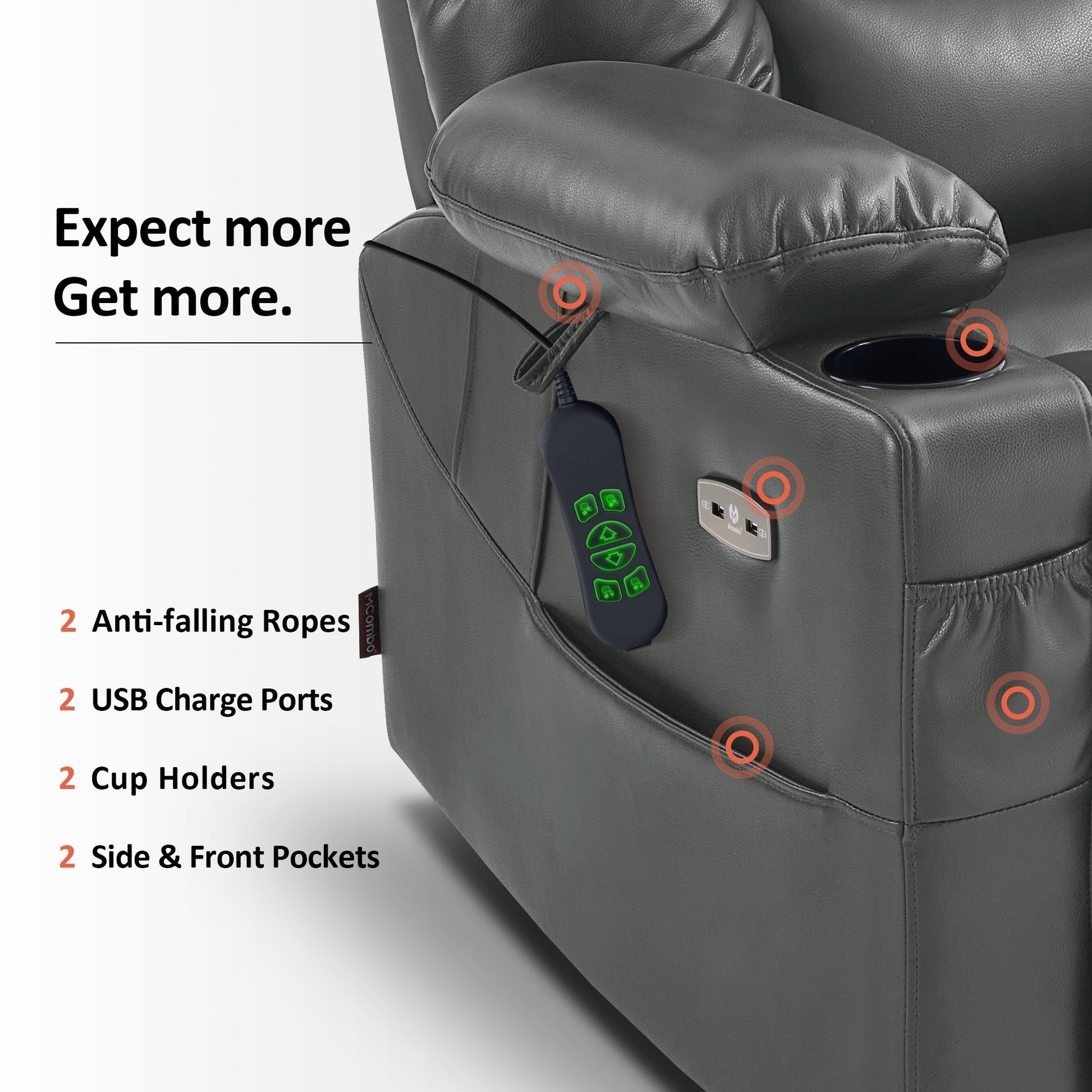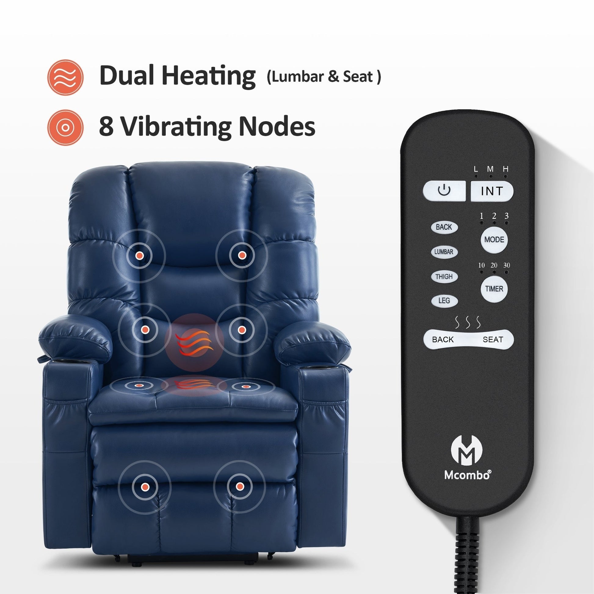 MCombo Large Dual Motor Power Lift Recliner Chair with Massage and Dual Heating for Elderly People, Faux Leather 7634