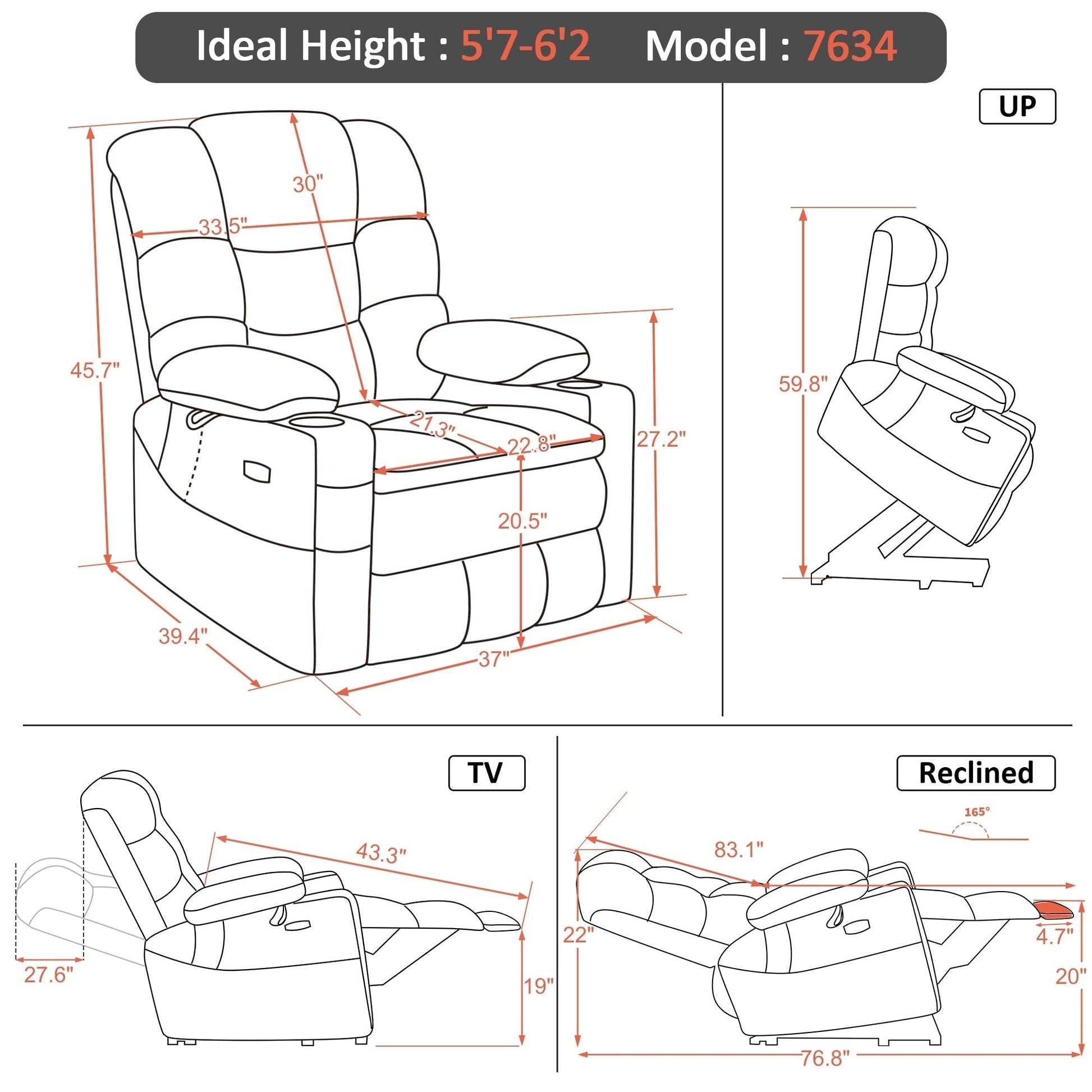 • Infinite Position: Since the built-in dual motor, you can adjust the backrest and footrest independently to the infinite position you want, lift, TV, and lay-flat ?????(Max reclining angle: 165°)