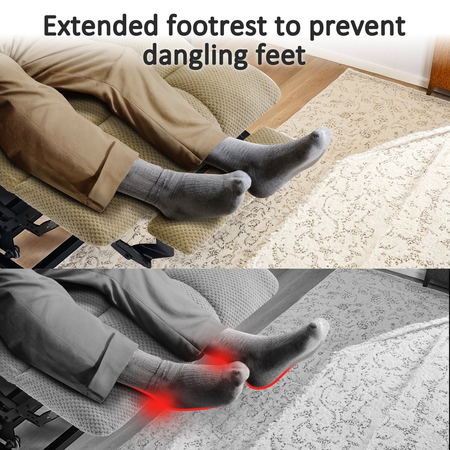 • Infinite Position: Since the built-in dual motor, you can adjust the backrest and footrest independently to the infinite position you want, lift, TV and lay-flat (Max reclining angle: 165°)