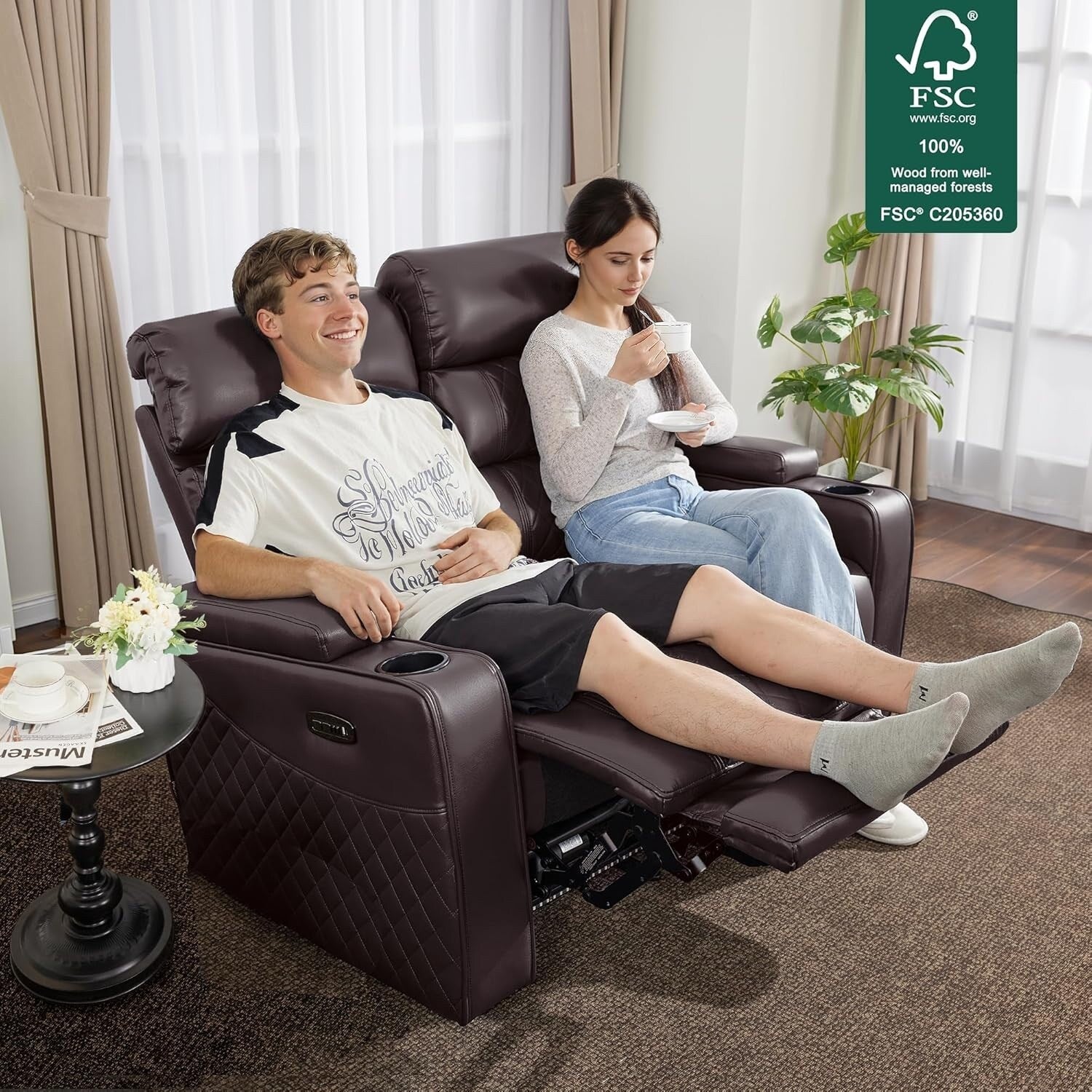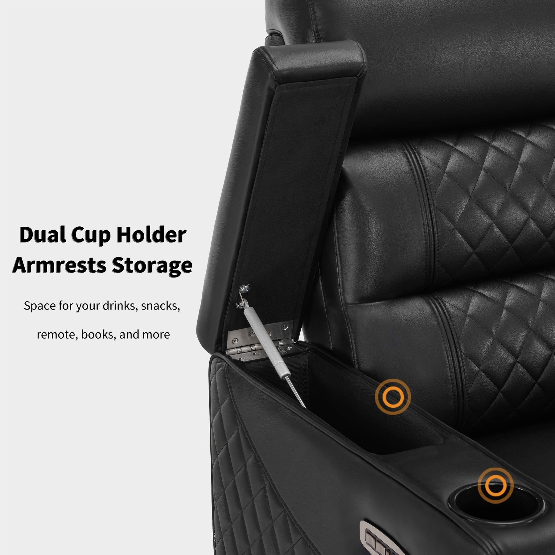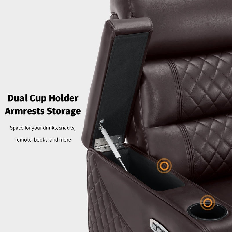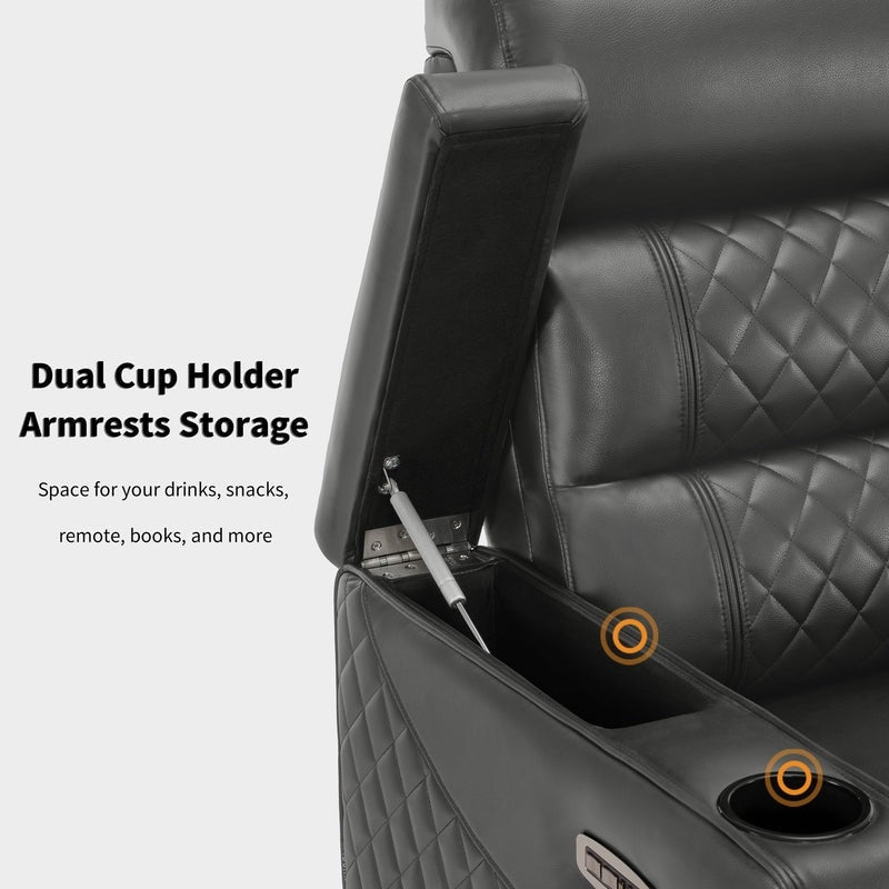 The power reclining sofa is suitable not only for the movie room, but also for living room. This electric power recliner loveseat sofa includes adjustable power headrests, hidden storage armrests, 2 USB ports, 2 Type-C ports and LED light.