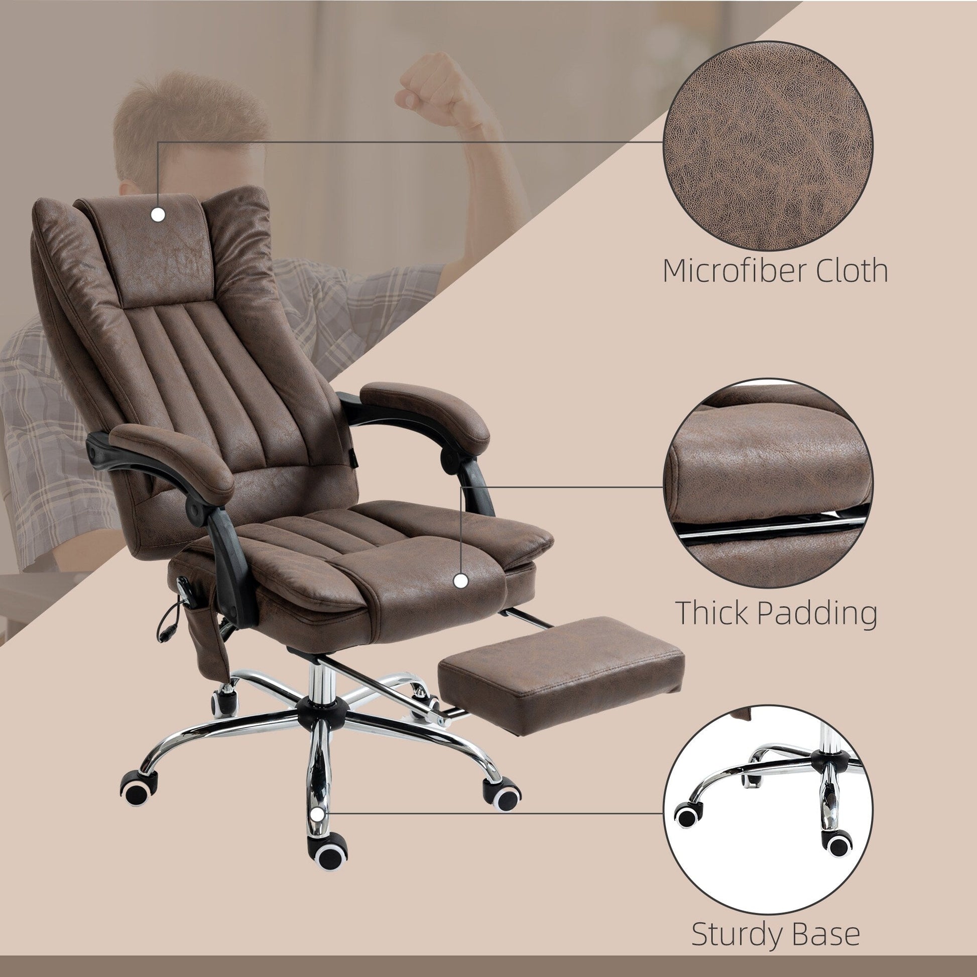 Unwind after a long day with this microfiber massage office chair, featuring six vibration points and three heat settings across the back, waist, and thighs. Designed for both comfort and function, it includes a reclining back, adjustable height, retractable footrest, and intuitive remote control. The padded design and soft-touch fabric add support and relaxation for daily use at home or in the office.