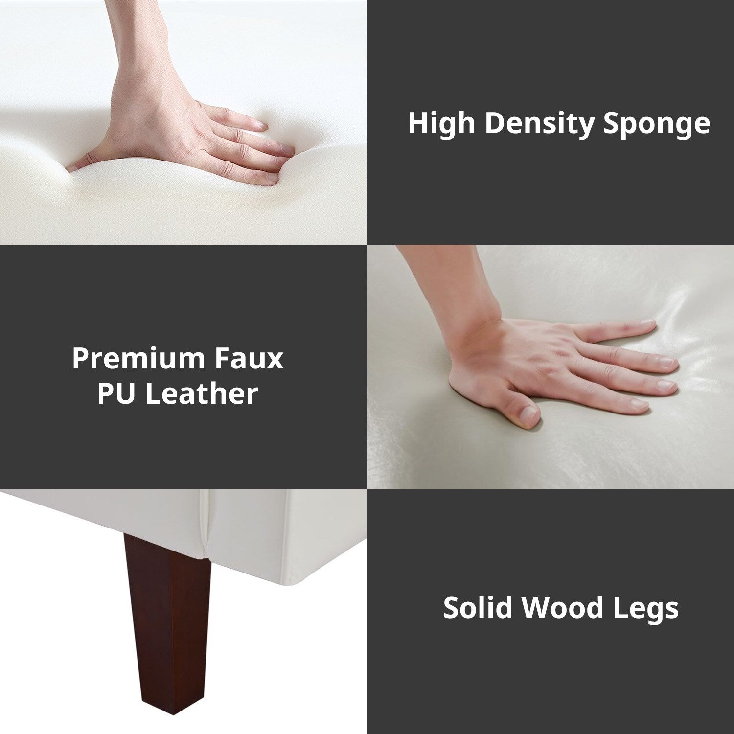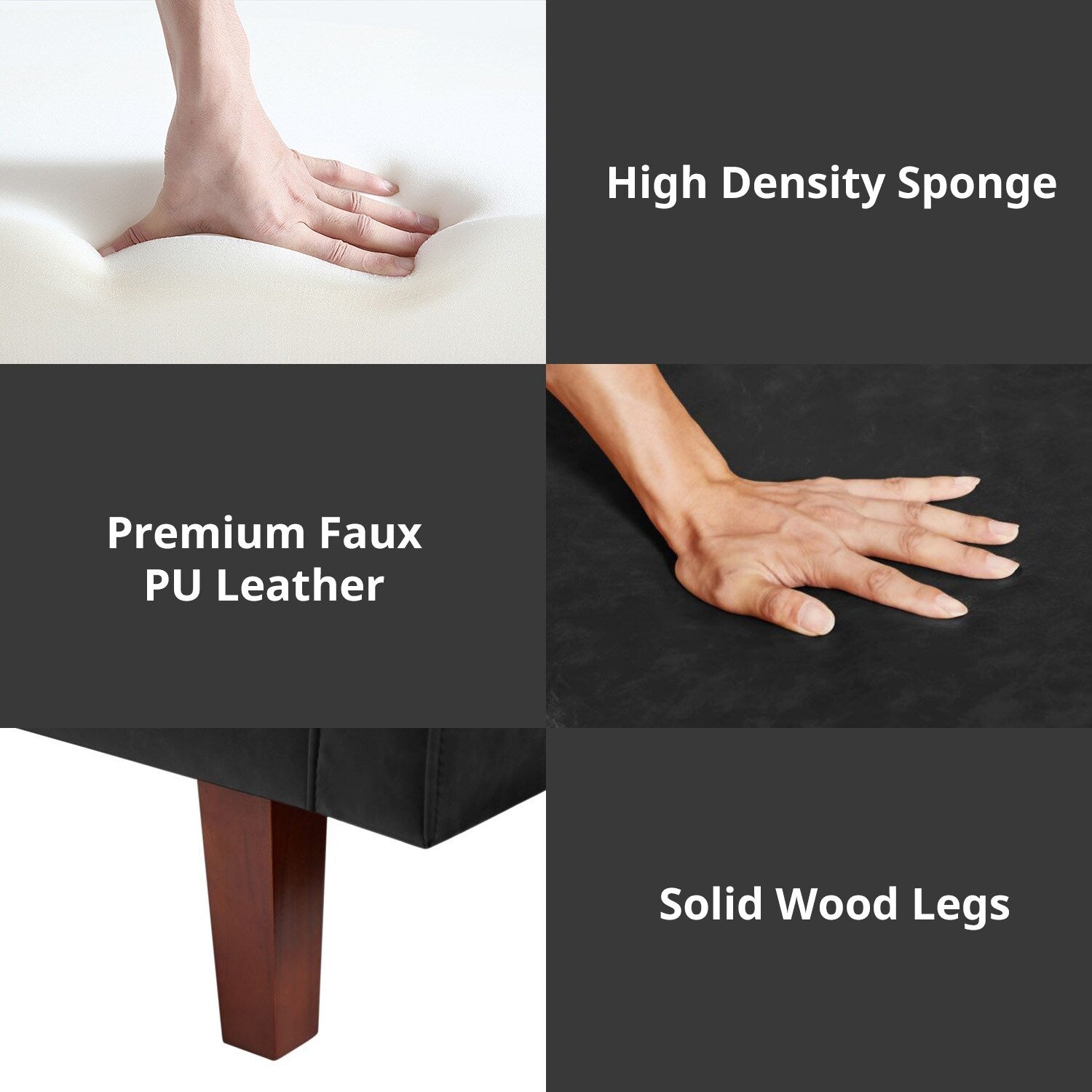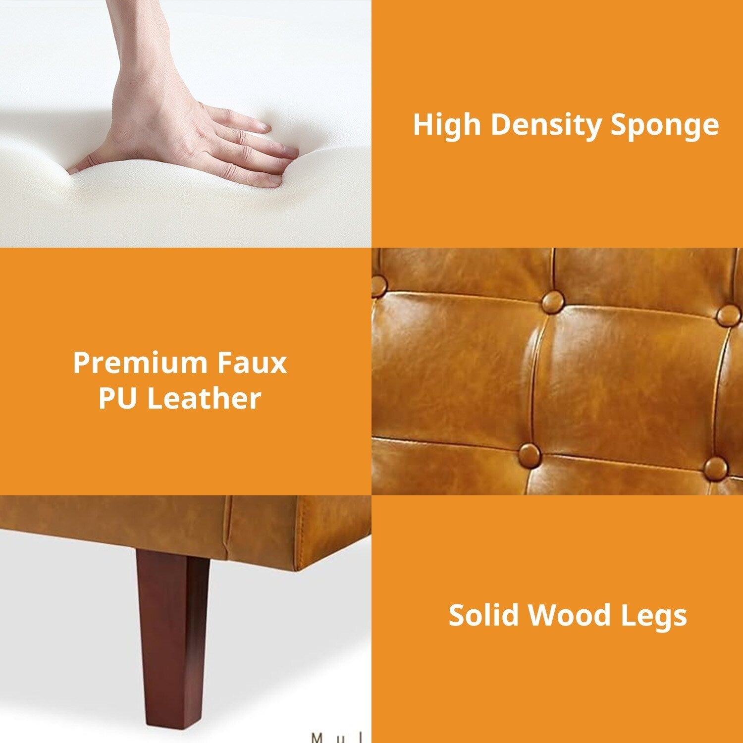 Sturdy & Durable : These comfy skin frinedly futon couches are structured with solid Eucalyptus wood and are reinforced by 4 solid rubber wood side legs and a strong plastic middle leg,each of these faux leather futons sofas can bear up to 600 LBS in terms of weight capacity. The wooden legs add bit of vintage farmhouse atmosphere into this futon sofa