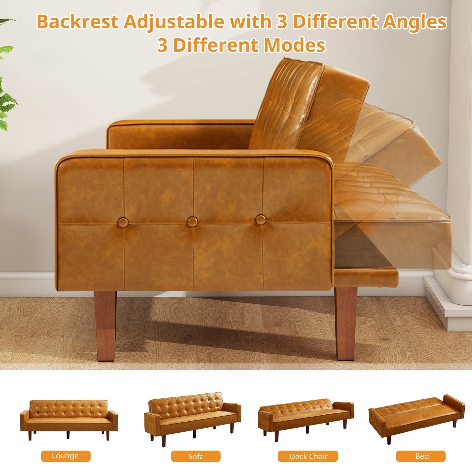 Convertible PU Leather Futon Sleeper Sofa Bed : The backrest of these button tufted living room bedroom futon sofas are 3 angles adjustable. It can be converted easily from a futon couch into a lounge couch or a futon sleeper sofa according to your will