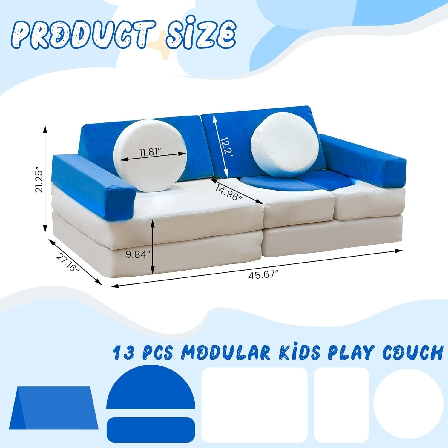 Throw Pillows: Our sponges have high rebound technology to provide you with a safe and comfortable playing area where you can jump, climb and fall without having to worry about the hard surfaces of wooden floors. This folding sofa will put you in a good mood. It has two throw pillows, so you can lie down more comfortably.