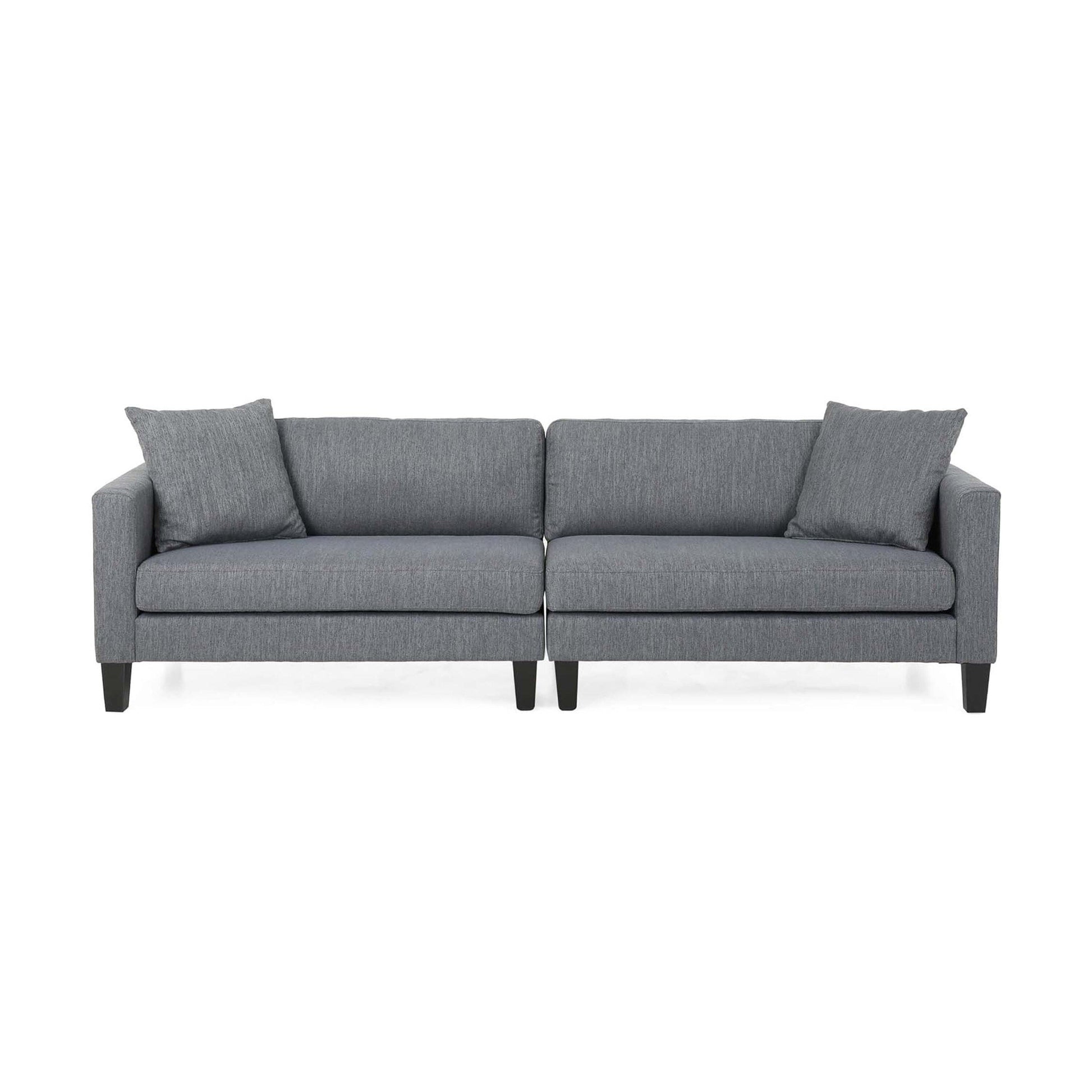 Designed for modern living, the Miry three seater sofa blends plush comfort with sleek style. Upholstered in soft gray polyester, it features a spacious seat and sturdy wood frame for lasting support. The two plush cushions and supportive pocket spring seats with sturdy birch wood legs lend durability and a touch of natural warmth. Explore more in our Miry collection.