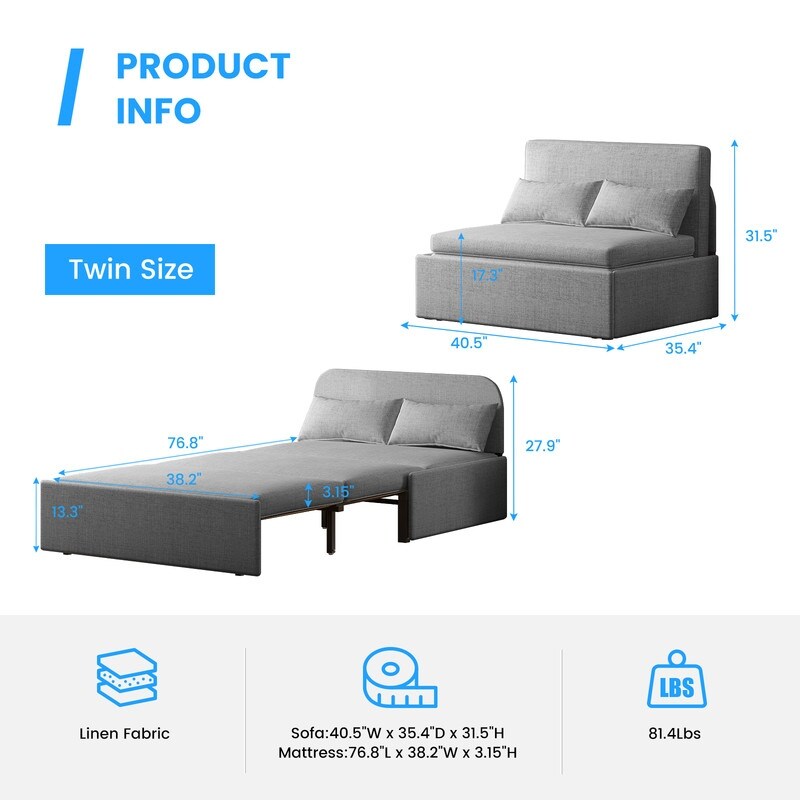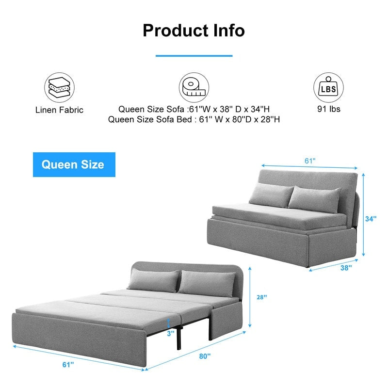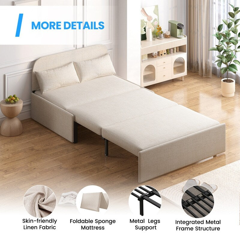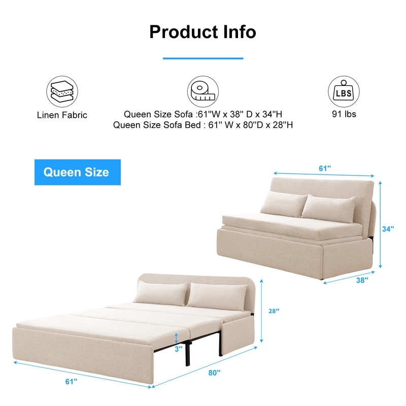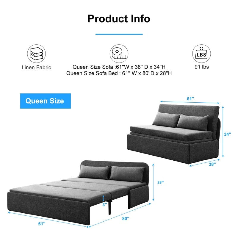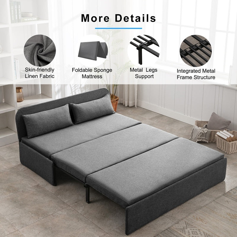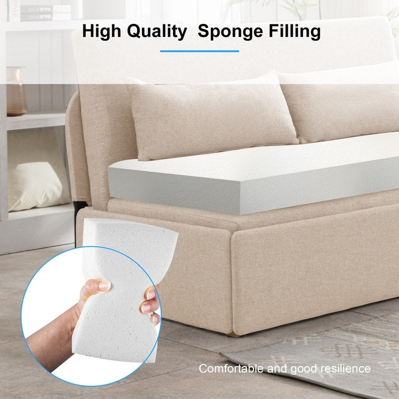 ðãSkin-friendly Linen Fabric & Memory FoamãCrafted with skin-friendly linen fabric and high-density sponge cushion with ergonomic design, our linen bed couch could effectively make your back and lumbar at ease and enjoy a good night's sleep. By the way, the foam layer is specifically designed to breathe, allowing you to remain cool throughout the night.