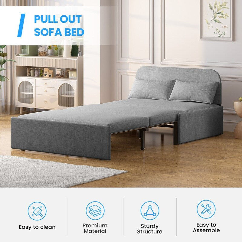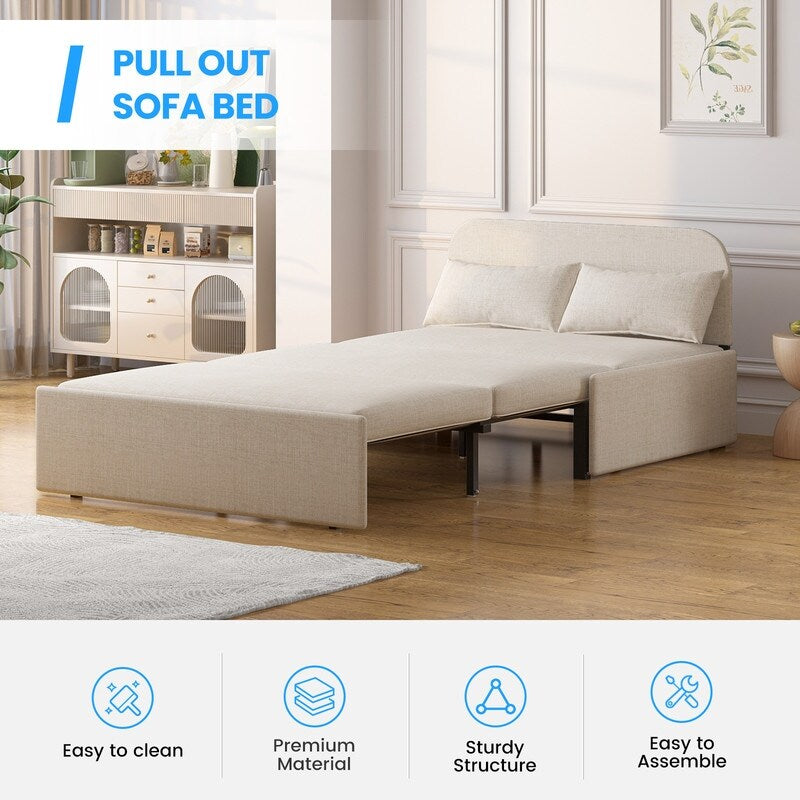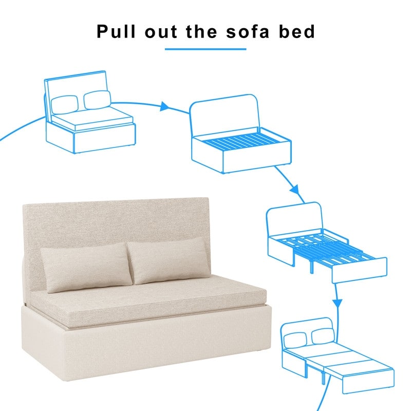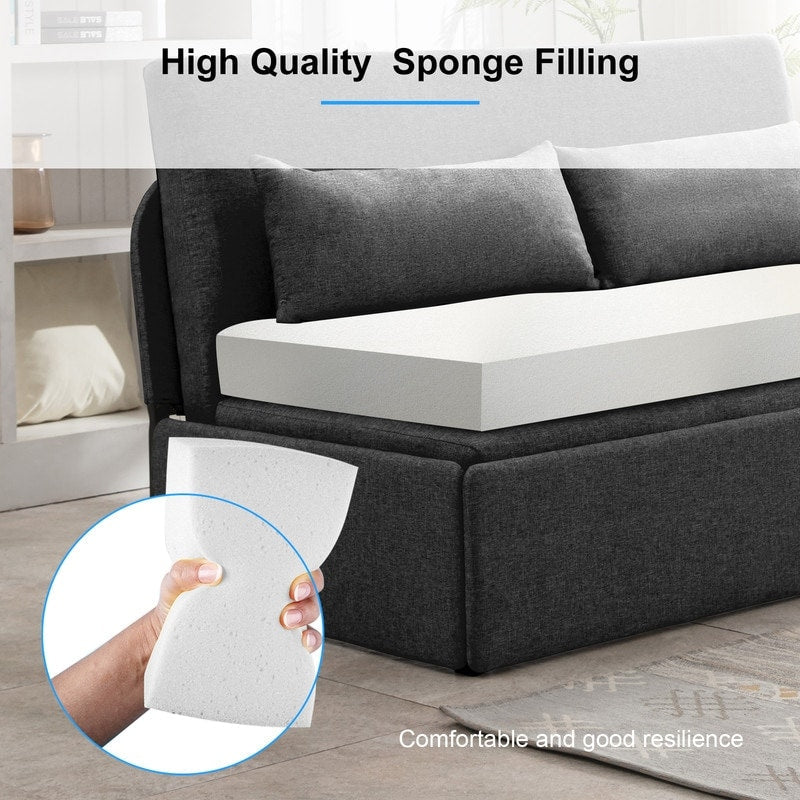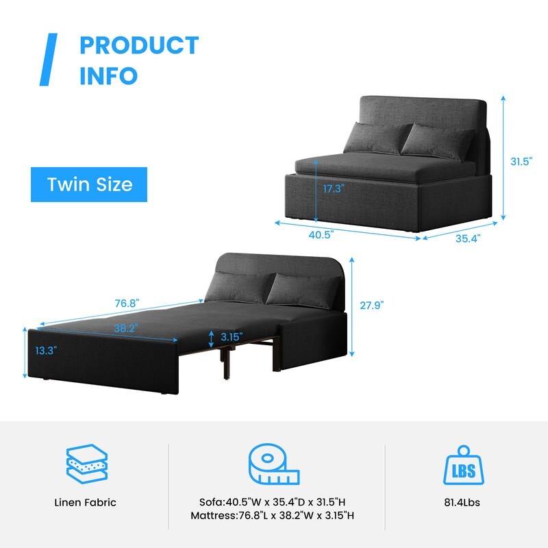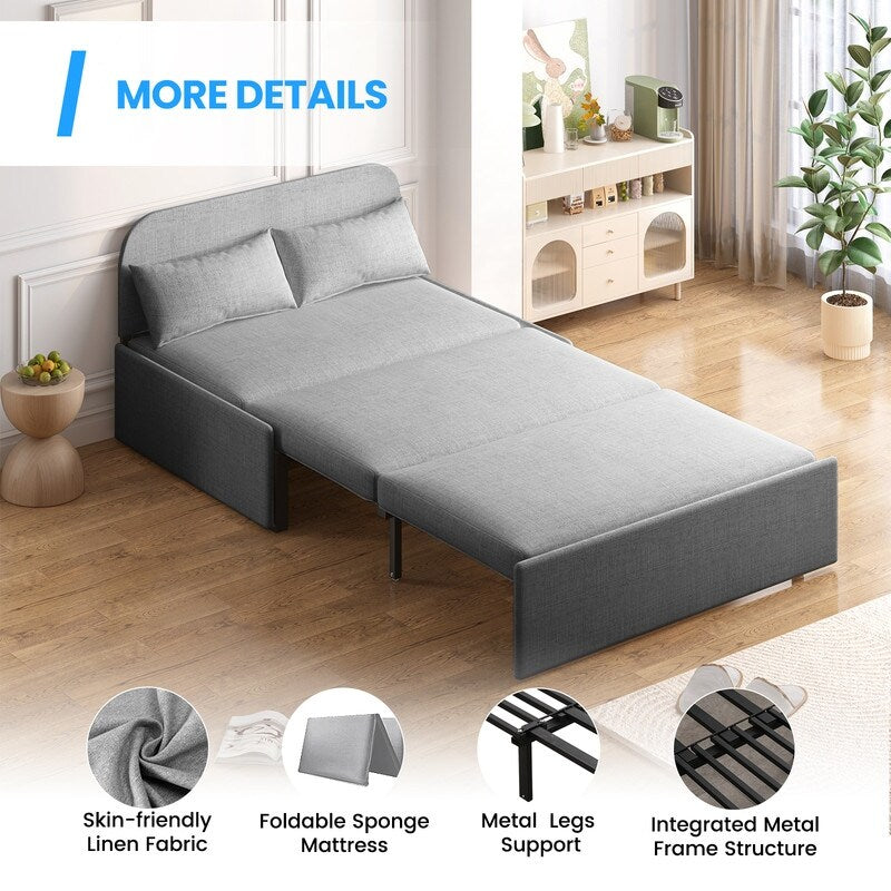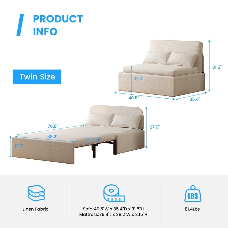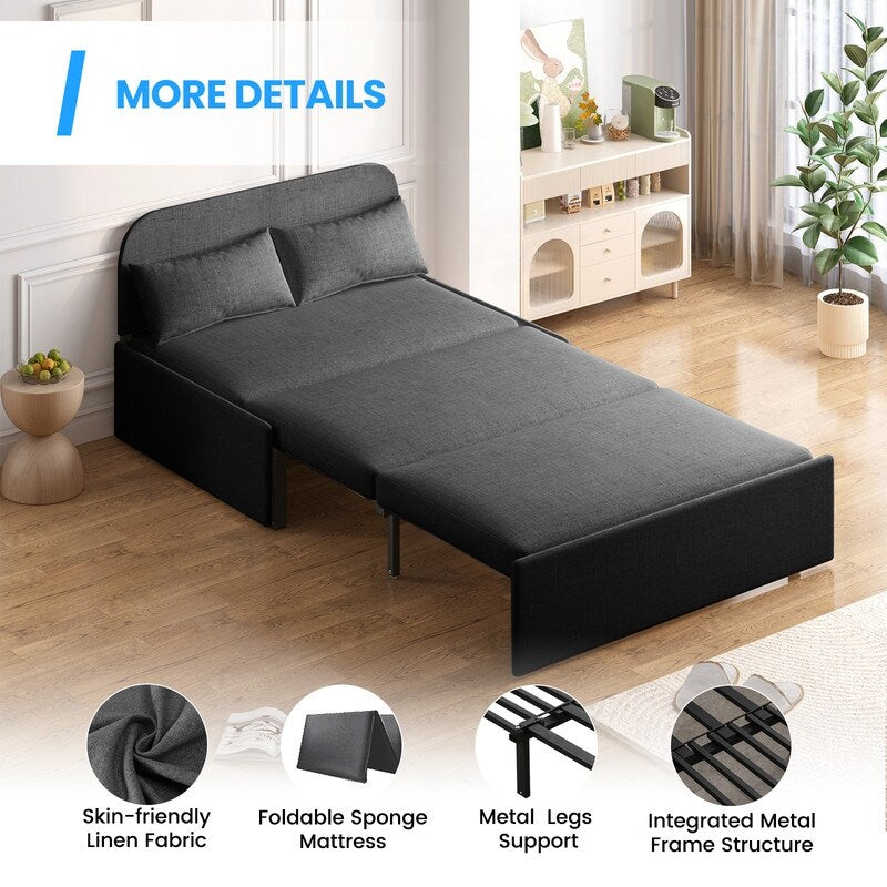 ðãSkin-friendly Linen Fabric & Memory FoamãCrafted with skin-friendly linen fabric and high-density sponge cushion with ergonomic design, our linen bed couch could effectively make your back and lumbar at ease and enjoy a good night's sleep. By the way, the foam layer is specifically designed to breathe, allowing you to remain cool throughout the night.