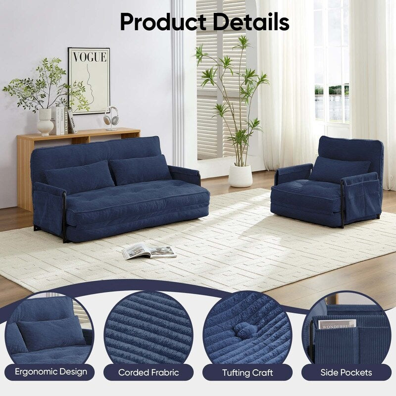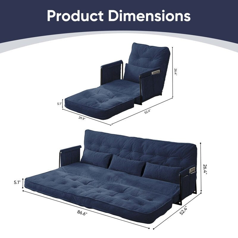 • Folding Sofa Bed: Switch between sofa, recliner, and bed with one click to meet various needs.